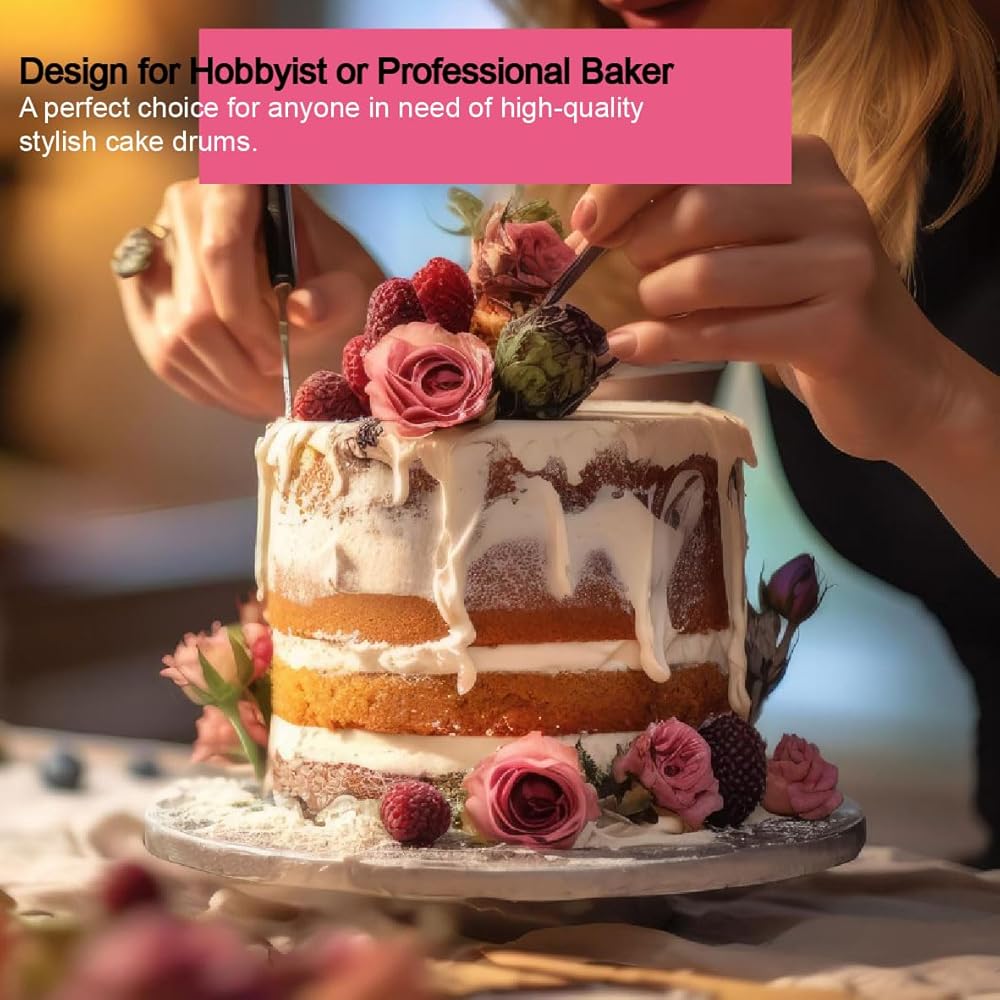 ★تصميم للكعك الثقيل الطويل. بفضل البناء القوي، فإن طبول الكعك قوية جدًا ولا ينبغي أن تنحني أو تنحني عند وضع الكعك وحمله! تعتبر براميل الكيك هذه استثمارًا ممتازًا للهواة أو الخبازين المحترفين، خاصة عندما تخطط لكعك طويل يصل إلى 3 طبقات.