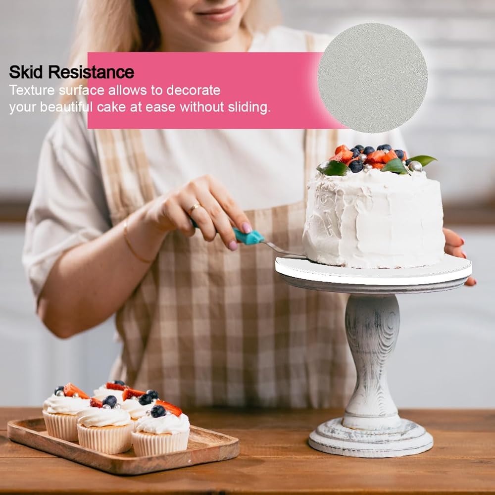 ★سطح مقاوم للدهون. ألواح الكعك مغطاة بسطح نسيجي من الأعلى والحافة، وهي مقاومة للماء والشحوم، وسهلة المسح إذا حصلت على كريمة زبدة زائدة على اللوحة. يساعد الملمس أيضًا على إبقاء طبولتك في مكانها على القرص الدوار للكعك أو حتى إذا كنت تضيف طبول الكعك إلى لوحة أخرى أو دعامة/حامل للكيك!