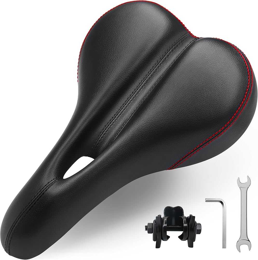 • 〖تصميم محسّن خالٍ من الألم〗: يوفر الشكل الانسيابي والقطع المركزي لمقعد الدراجة الخاص بنا تهوية ممتازة ويخفف الضغط على العجان، مما يضمن قيادة مريحة وخالية من العرق.
