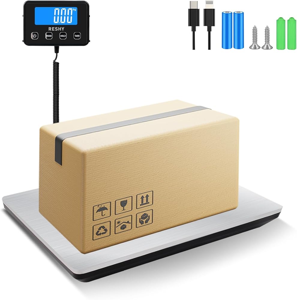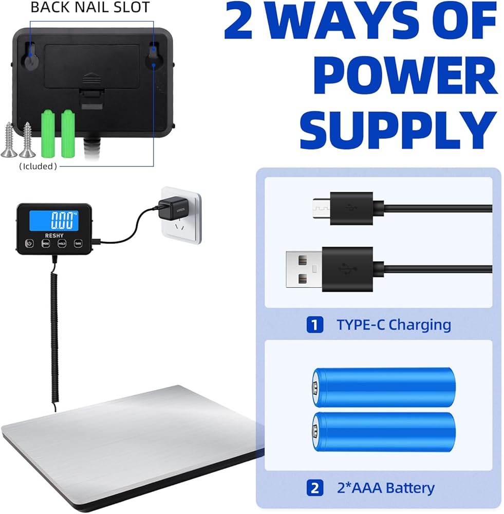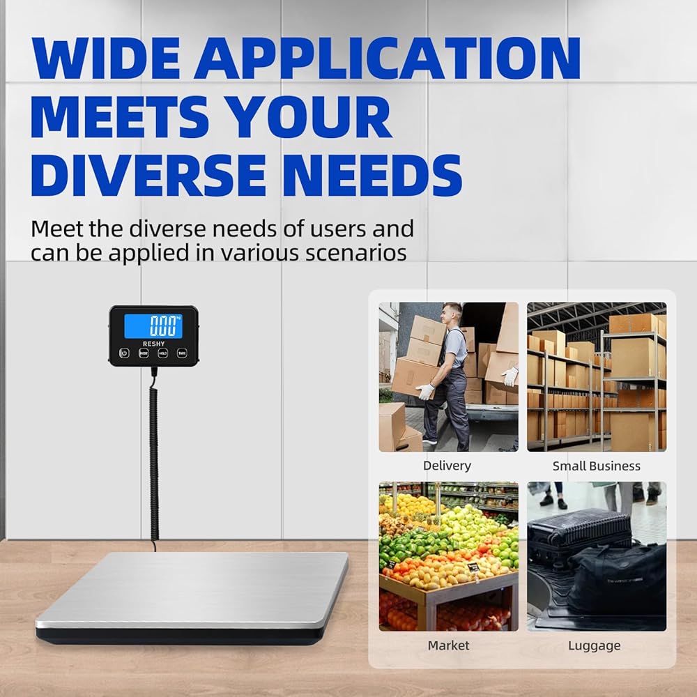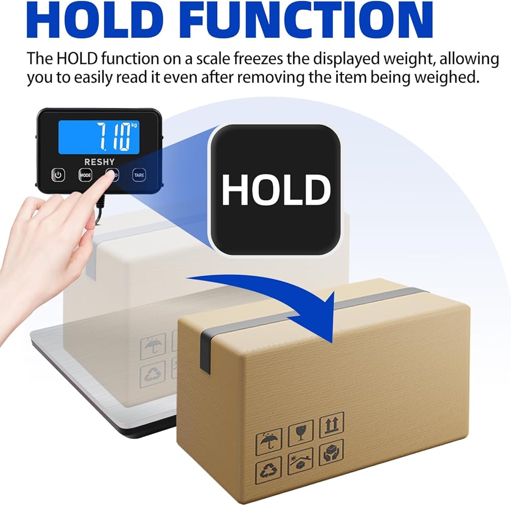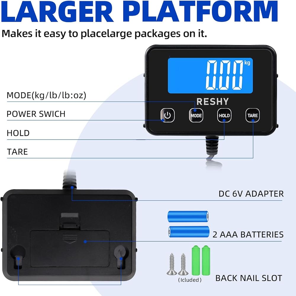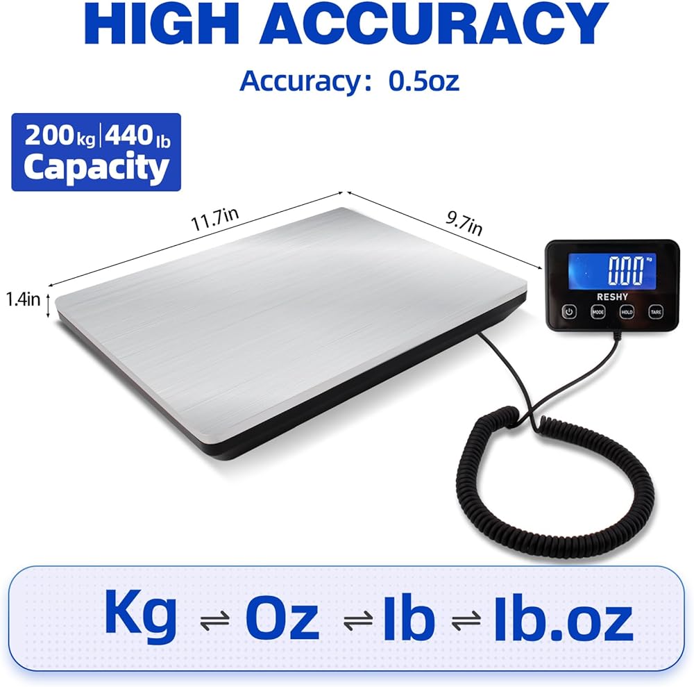 مقياس الشحن الرقمي RESHY، مقياس بريدي عالي الدقة 440 رطل × 0.5 أونصة للحزم مع وظيفة التعليق/الفارغة، مقياس البريد من الفولاذ المقاوم للصدأ، مقياس الحزمة للأعمال الصغيرة، مقياس الأمتعة على نطاق البريد