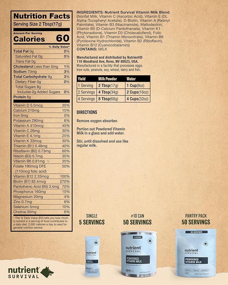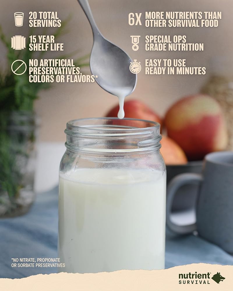 Nutrient Survival Powdered Vitamin Milk, Freeze Dried Prepper Supplies & Emergency Food