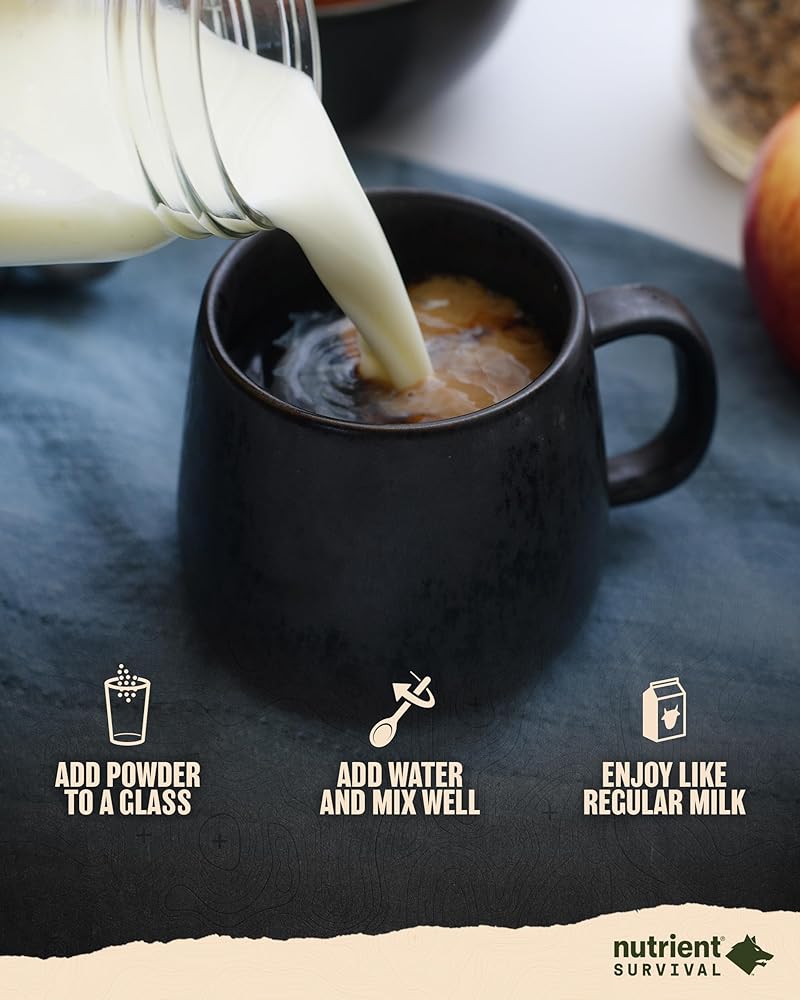 FEED YOUR FREEDOM: Enjoy Nutrient Survival creamy, non-fat vitamin milk warm or cold. Just add water to the milk powder to get the instant milk ready to use. Nutrient dense powdered milk, a great go-to for both everyday and emergency situations