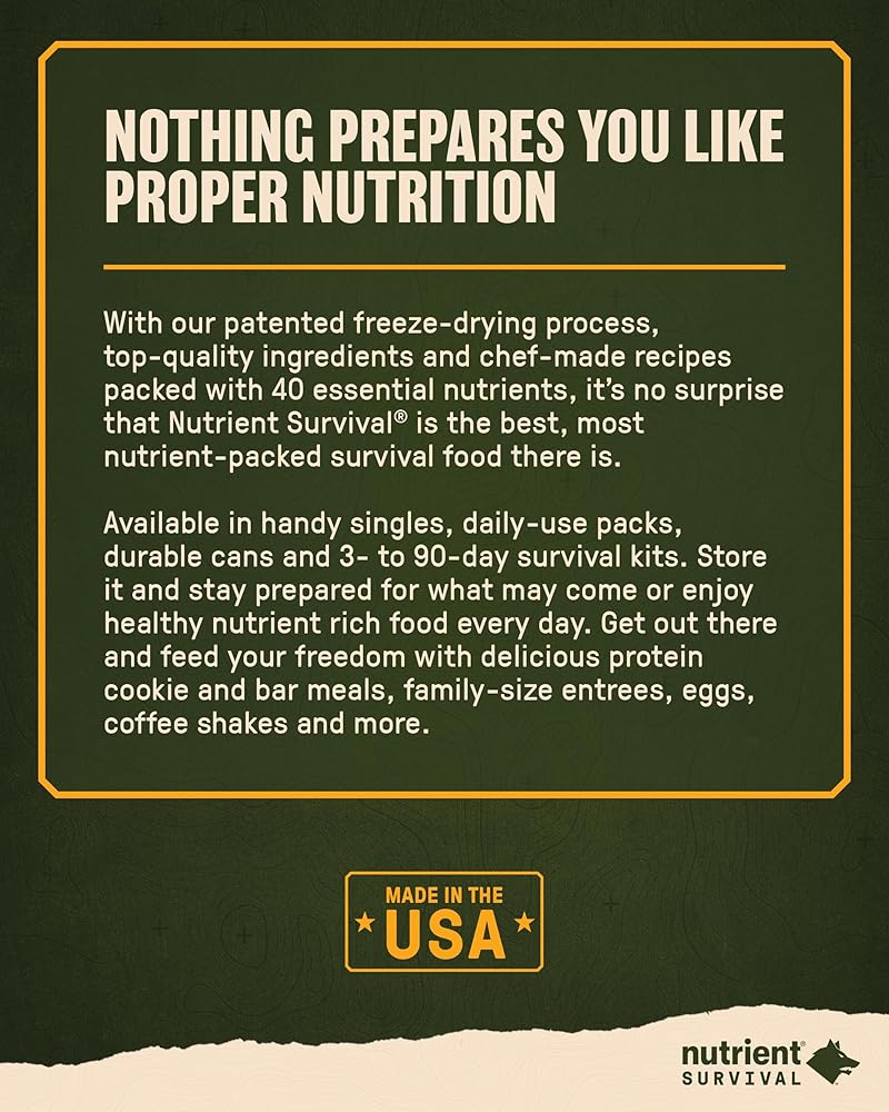 GO-TO NUTRITION WHEN NEEDED: Nutrient Survival foods are American born and made, ensuring the best, healthiest and supremely delicious nutrition. Perfect for times of stress, a quick snack, elevating performance, travel, prepper supplies or living off-the-grid