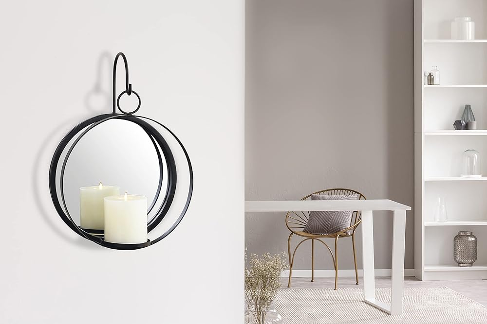 ديكور جداري واسع الاستخدام: هذا الشمعدان الدائري مقاس 35.56 سم × 22.86 سم × 11.43 سم هو الحجم المثالي للديكورات الداخلية للمنزل. حامل الشموع الرائع يبرز أي غرفة بشكل مثالي ويسلط الضوء على الطراز الصناعي الحديث لأي مساحة داخلية؛ مثل غرفة المعيشة أو الحمام أو الممرات أو المداخل أو غرف النوم. ملحوظة: (الشموع غير متضمنة)
