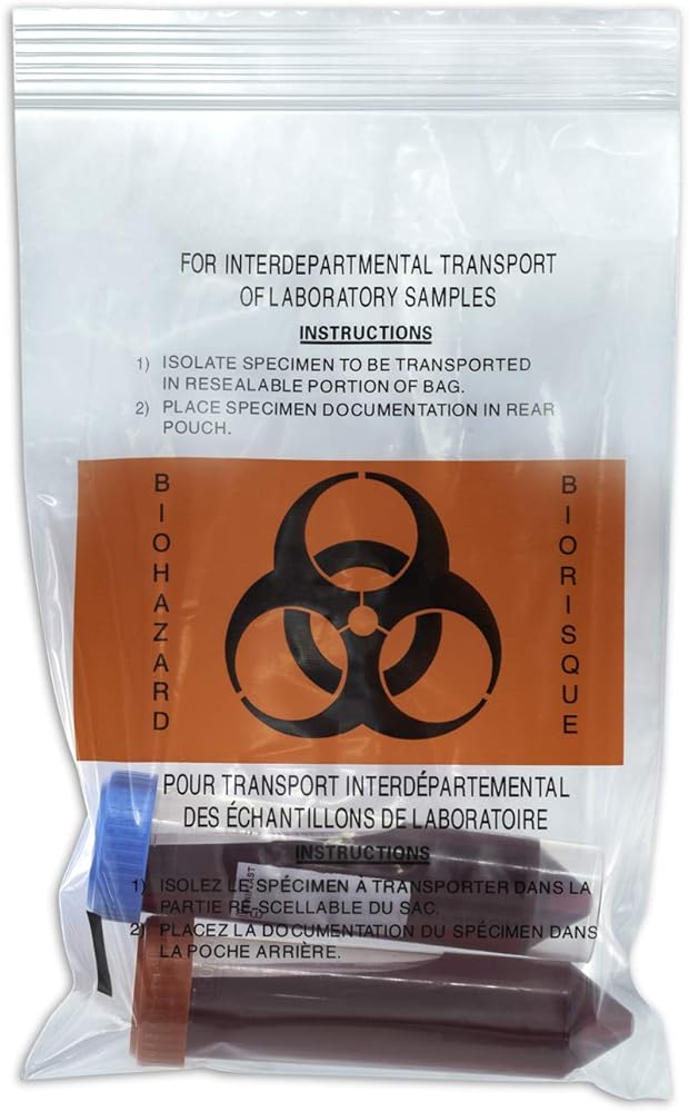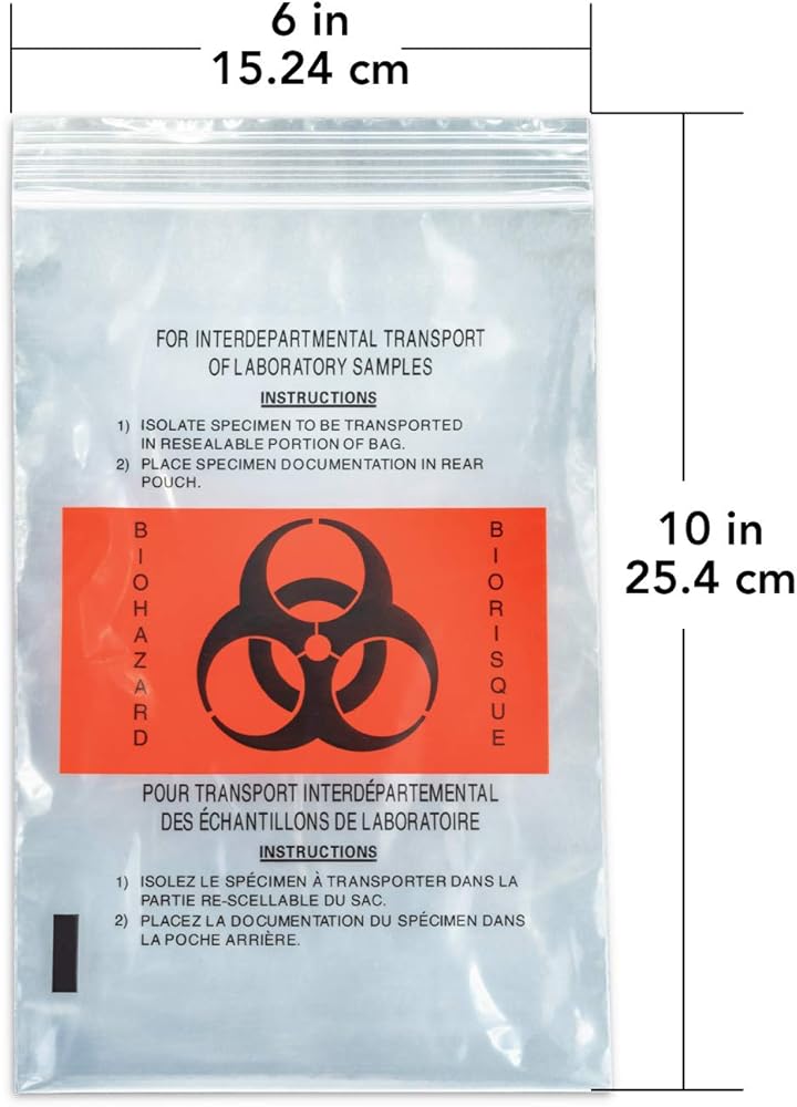 The Marathon Biohazard Waste bags provide a safe and convenient way of storing and transporting hazardous materials. Made with high quality polyethylene, these bags are leak resistant. These bags have a zip-lock (re-sealable/re-useable) and an additional pouch to keep paperwork separate and dry. They also feature pre-printed bilingual descriptions and the universal biohazard symbol are featured to help ensure complete understanding for safety and proper use. Perfect for labs, schools, hospitals, offices and industrial facilities. The size of these bags are 6” x 9” inches.