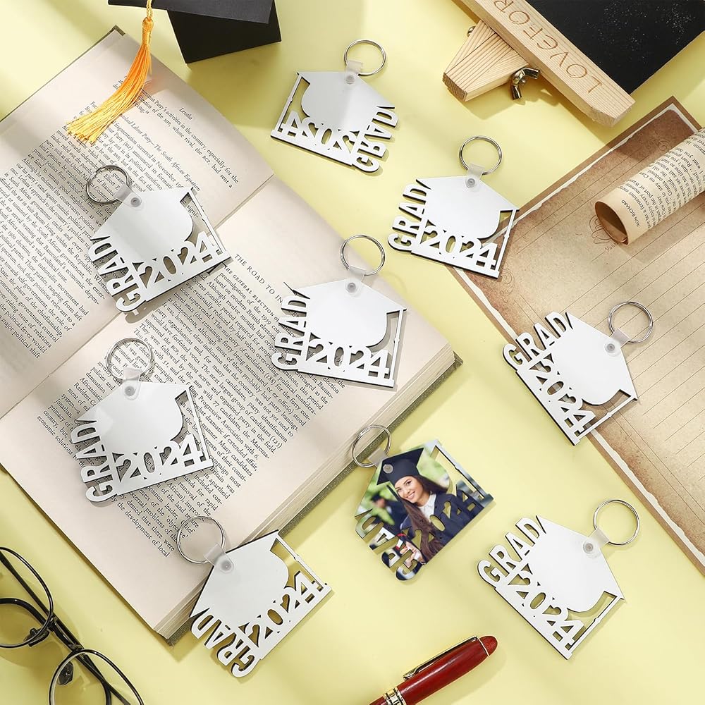 Trnayi 24 قطعة سلاسل المفاتيح التخرج التسامي فئة هدايا التخرج نقل الحرارة سلاسل المفاتيح DIY (نمط غراد 2024)