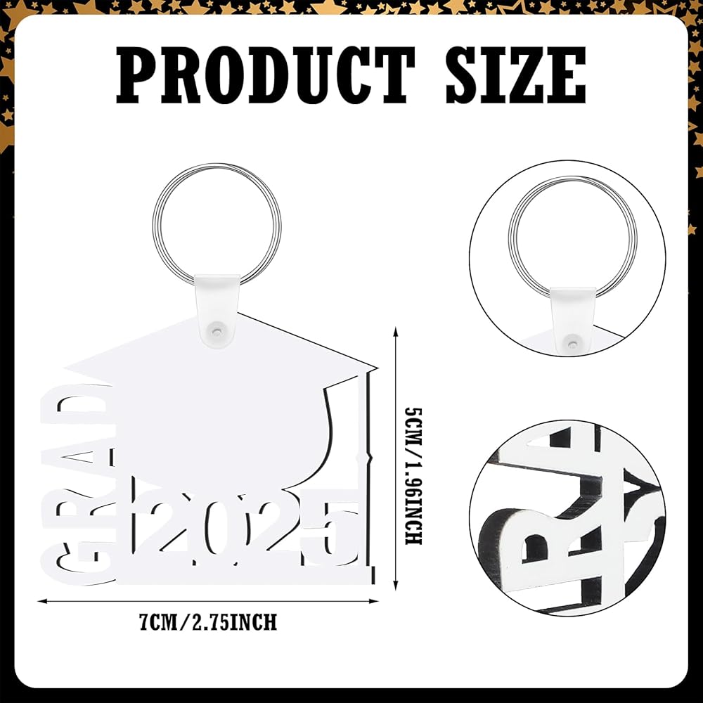 Each graduation blank keyring measures approx. 1.97 x 2.76 inches or 5 x 7 cm, which can be applied for carrying access cards, metro cards, school cards, keys, etc., as well as decorating your school bag, backpack, wallet, pouch and more. Its compact size makes it ideal for everyday use, allowing you to carry your precious graduation memories with you wherever you go.