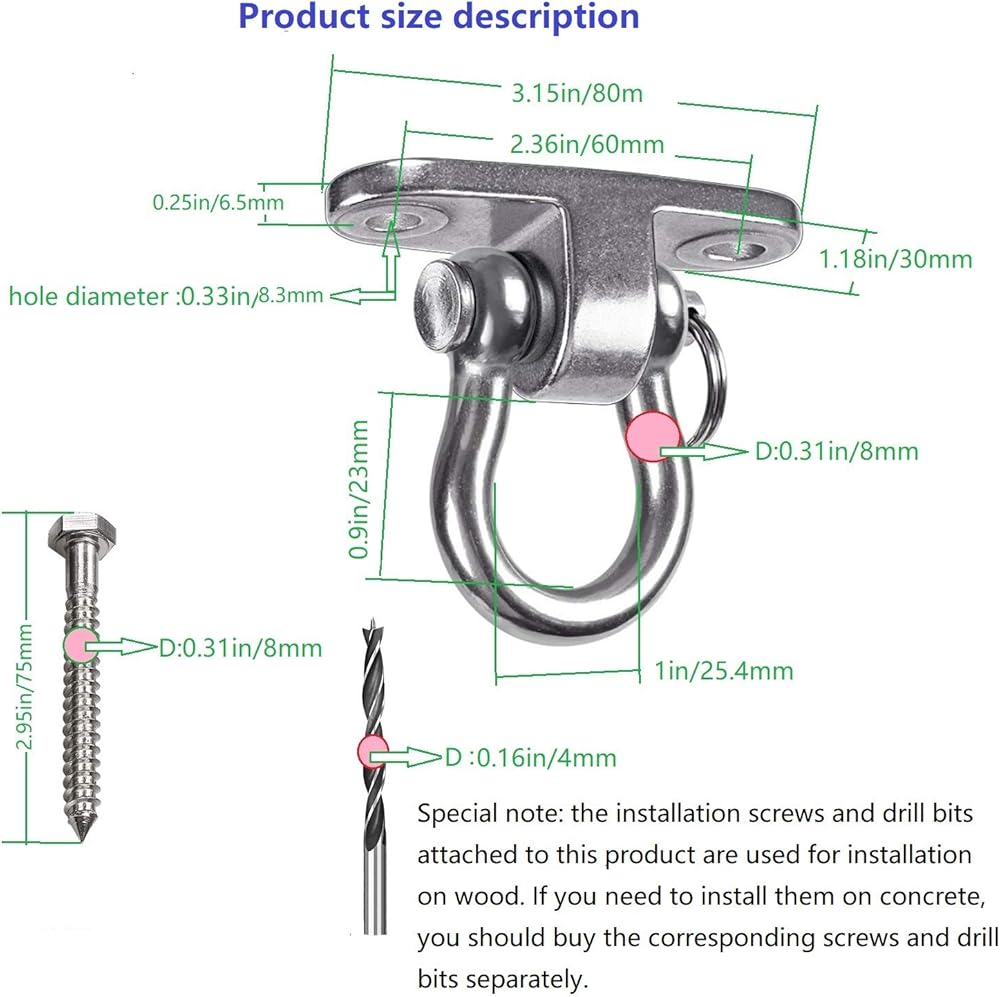 ✔متعددة الأغراض: مادة من الفولاذ المقاوم للصدأ، لا تصدأ أبدًا، ويمكن استخدامها في الداخل أو الخارج: بما في ذلك أرجوحة الشرفة، أو الأرجوحة، أو أرجوحة الغابة، أو الشماعة، أو كرسي اللياقة البدنية، أو حقيبة الرمل، أو الرقص الهوائي، أو كرسي الأطفال، أو شبكة زاوية التأرجح، أو الدوران، أو أي دوران مستقر، يمكن أن يمنع بشكل فعال تشويه السلسلة أو الحبل.