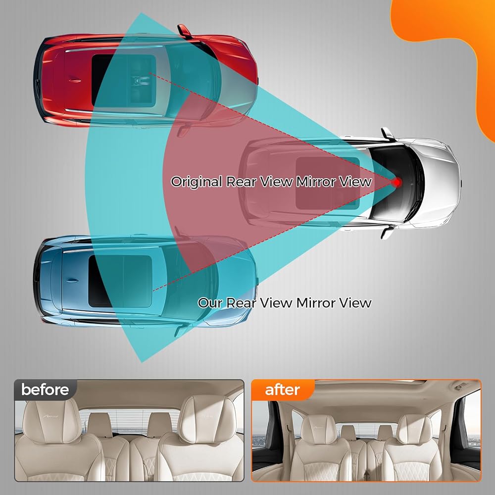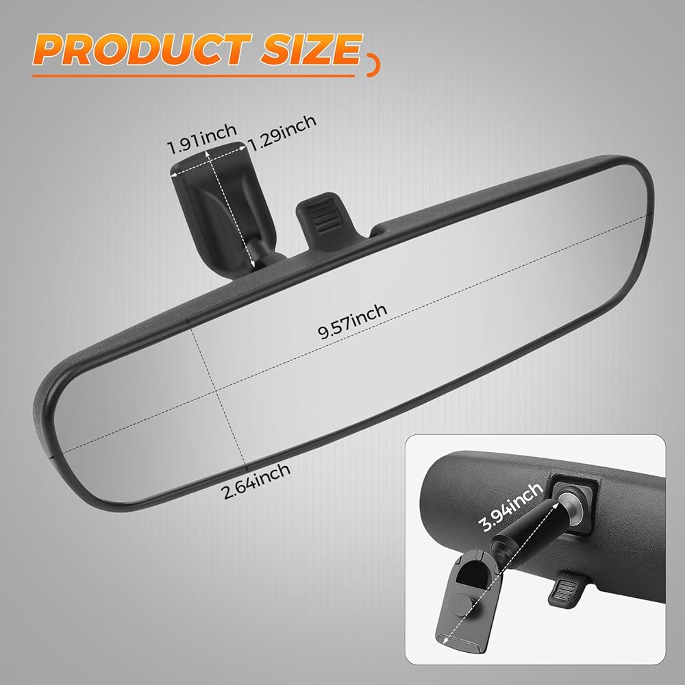 【رؤية أفضل】- مرآة الرؤية الخلفية هذه مزودة بزجاج مضاد للوهج / مفتاح تعديل ليلي. يمنع مضاد التوهج المصابيح الأمامية من إزعاجك أثناء الليل. يوفر صورة واضحة وغير مشوهة، ويمنع الوهج ويجعل القيادة أكثر أمانًا. يبلغ طول هذه المرآة 9.57 بوصة وطولها 2.64 بوصة، مما يزيد من رؤيتك لكل من خلفك والركاب في المقعد الخلفي.