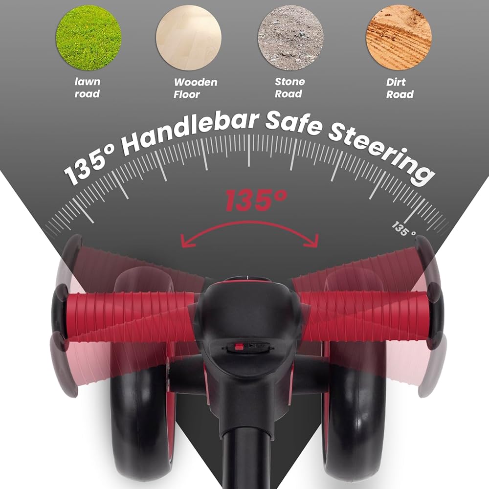 • ضمان السلامة: لا تحتوي على دواسات وعجلات مغلقة واسعة بالكامل تمنع قدم الطفل من الانزلاق. حد التوجيه 135 درجة يمكن أن يمنع الانقلاب، كما أن العجلات الأمامية لدراجة الأطفال مع تصميم توجيه الجاذبية تضيف الأمان. مادة البولي كربونات الشفافة في وسط عجلات الدراجة المتوازنة للرضع والأطفال الصغار تضفي لمسة خيال علمي آسرة.