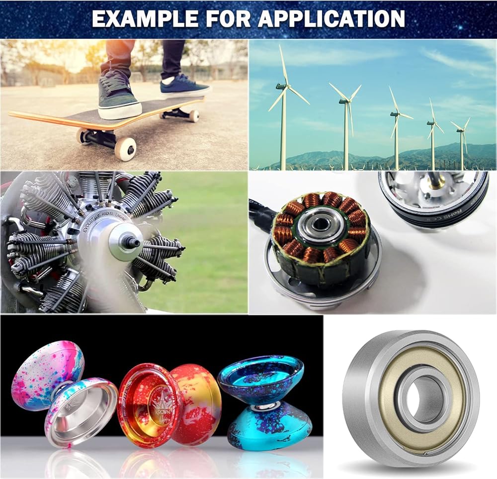 【يستخدم على نطاق واسع】مناسب لألواح التزلج والروبوتات والتزلج على الجليد والتزلج على الجليد والدراجات البخارية وغيرها من تطبيقات التزلج، وهو متاح أيضًا لمحامل عجلات الطابعة ثلاثية الأبعاد وما إلى ذلك.