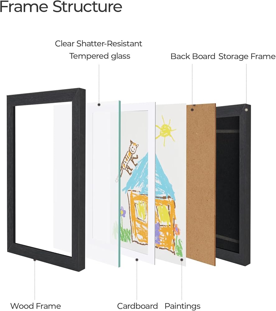 [عرض متنوع] كل طفل من مشاريع فنية للأطفال إطارات فنية للأطفال بأربعة خطافات في الخلف، ويمكن تعليقها أفقيًا أو رأسيًا على الحائط، مما يحول المساحة الخاصة بك إلى معرض فني لعرض رسومات الأطفال والأعمال الفنية ثنائية وثلاثية الأبعاد والصور والمستندات والشهادات والصور.