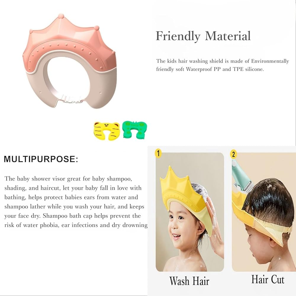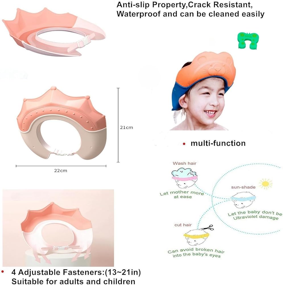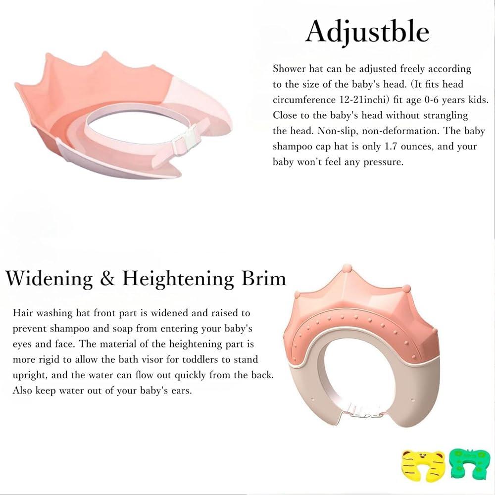 • The baby shower visor great for baby shampoo, shading, and haircut, let your baby fall in love with bathing, helps protect baby's ears from water and shampoo lather while you wash your hair, and keeps your face dry. Shampoo bath cap helps prevent the risk of water phobia, ear infections and dry drowning