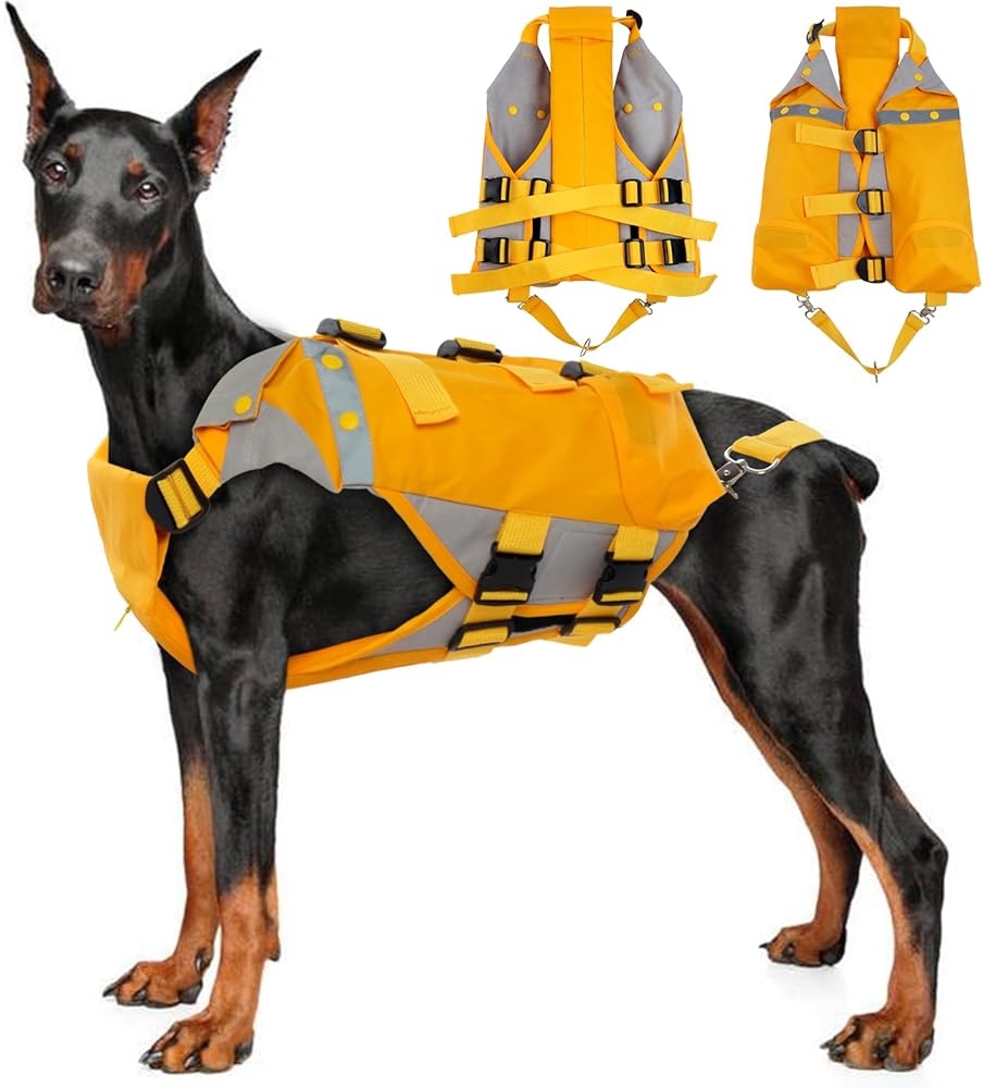 ♥♥ سترة نجاة للكلاب قابلة للتعديل مع مقاود إنقاذ ♥♥- تم تصميم بطن ورقبة الحفاظ على حياة الكلب بأشرطة متينة من النايلون قابلة للتعديل وإبزيم سريع الفك، سهل الارتداء والخلع. يعتبر مقود الإنقاذ مثاليًا لسهولة رفع الإنقاذ عندما يكون في خطر. حلقة على شكل حرف D قوية مناسبة لتثبيت مقود الكلاب إذا كنت تريد تمشية كلبك.
