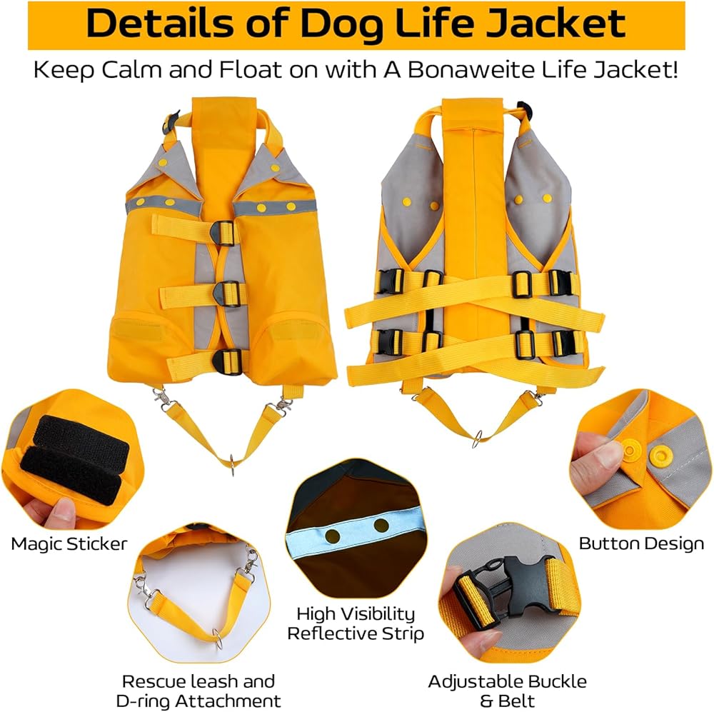♥♥ سترة نجاة الكلاب ذات الطفو العالي ♥♥- سترة نجاة الكلاب Bonawetie مصنوعة من إسفنج EPE اللؤلؤي و4 عبوات من أكياس الهواء المصنوعة من مادة TPU، والتي توفر أقصى قدر من الطفو في الماء وتمنح كلبك أمانًا إضافيًا أثناء المغامرات المائية دون تقييد حركة كلبك. تضمن سترة تعويم الكلاب الخاصة بنا أن يستمتع صديقك ذو الفراء بالسباحة أو ركوب القوارب أو مجرد اللعب بجانب الماء.
