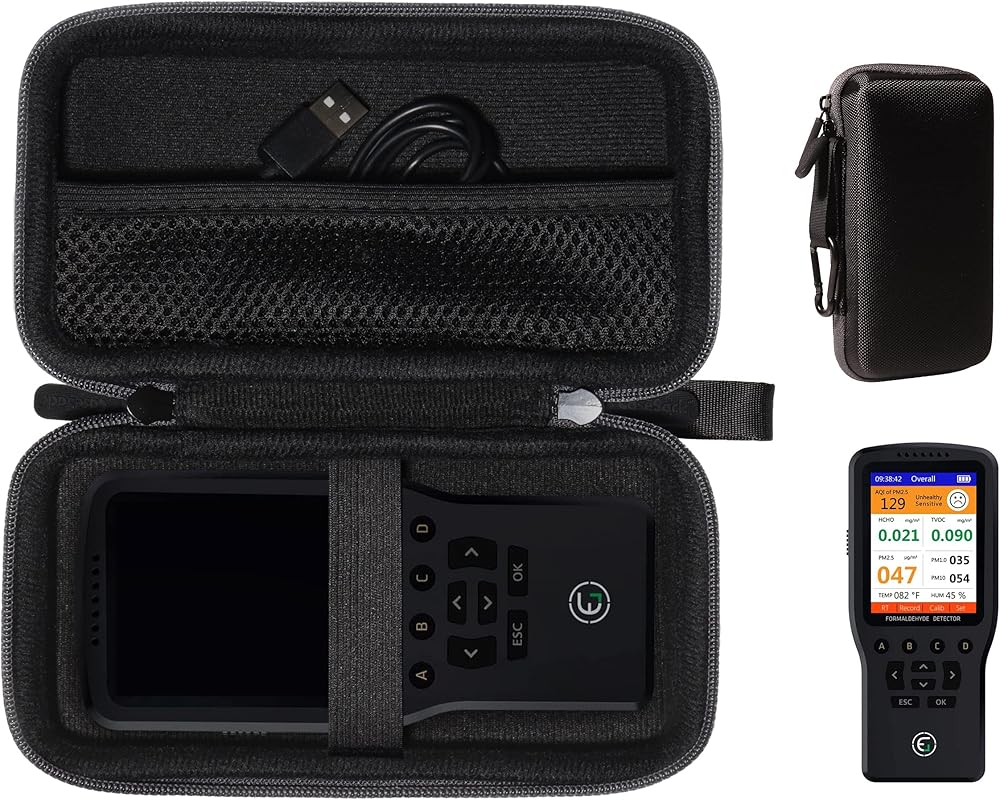 Featured Design: Strong compact light weight case to keep EG Air Quality Pollution Monitor well organized and protected; good for home storage and travel carrying
