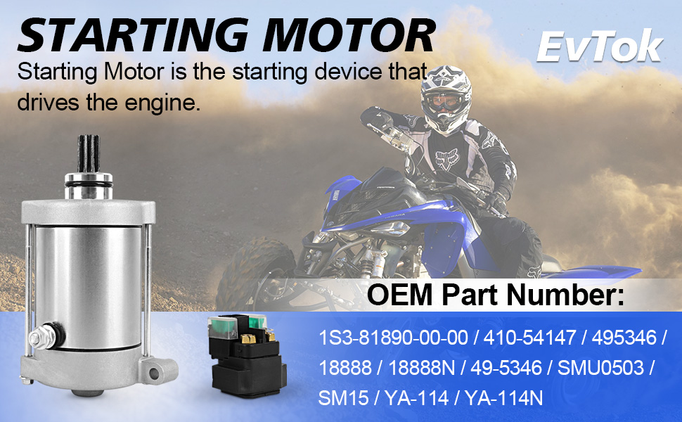 محرك بدء EvTok مع مرحل مناسب لـ Yamaha Raptor YFM700 2006-2021، Grizzly YFM700 2007-2008 ATV، استبدال 1S3-81890-00-00 410-54147 SMU0503