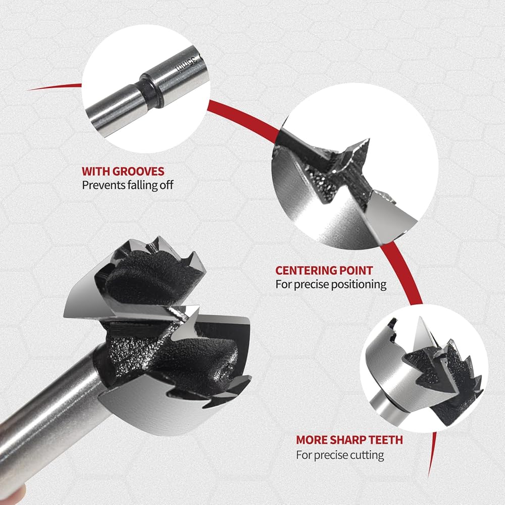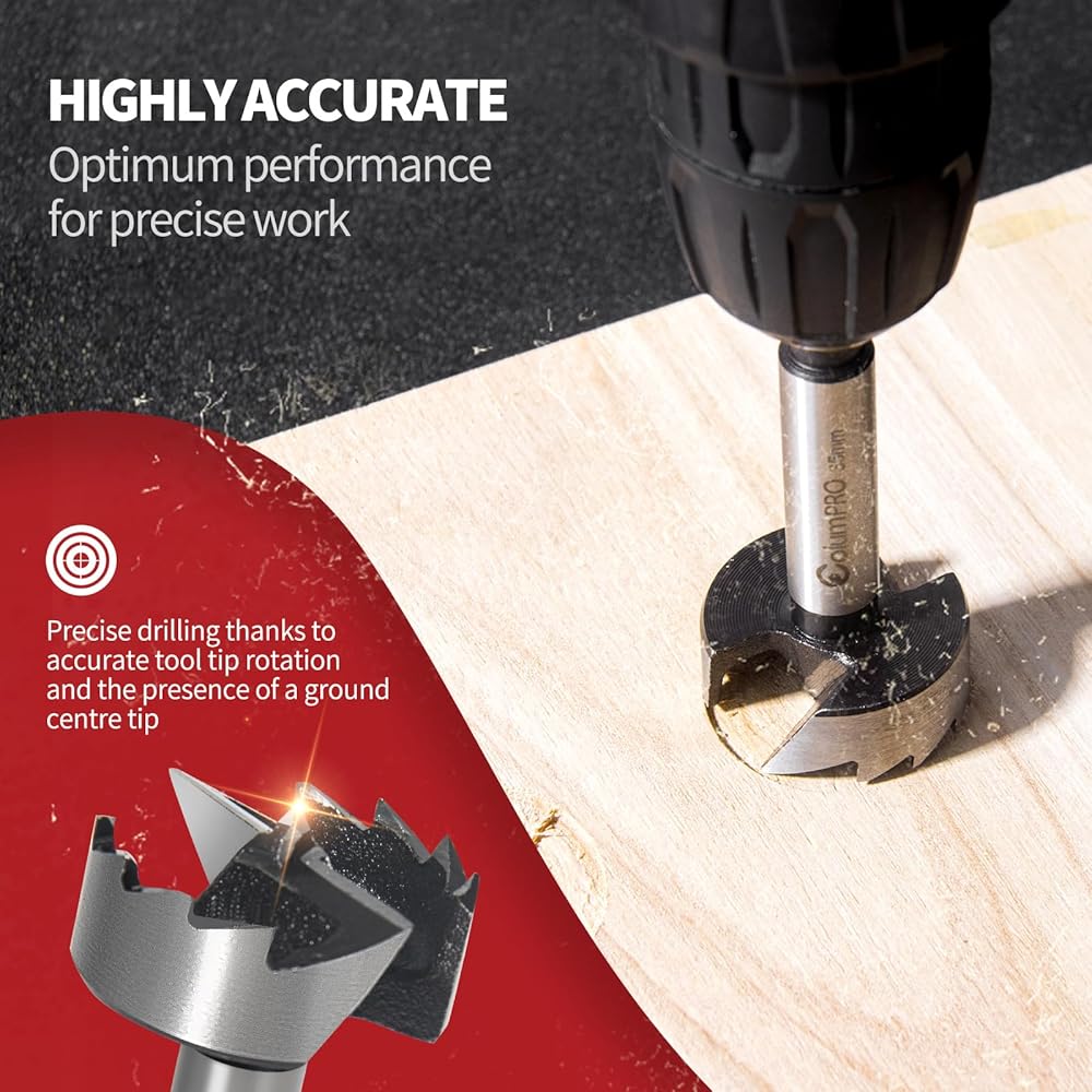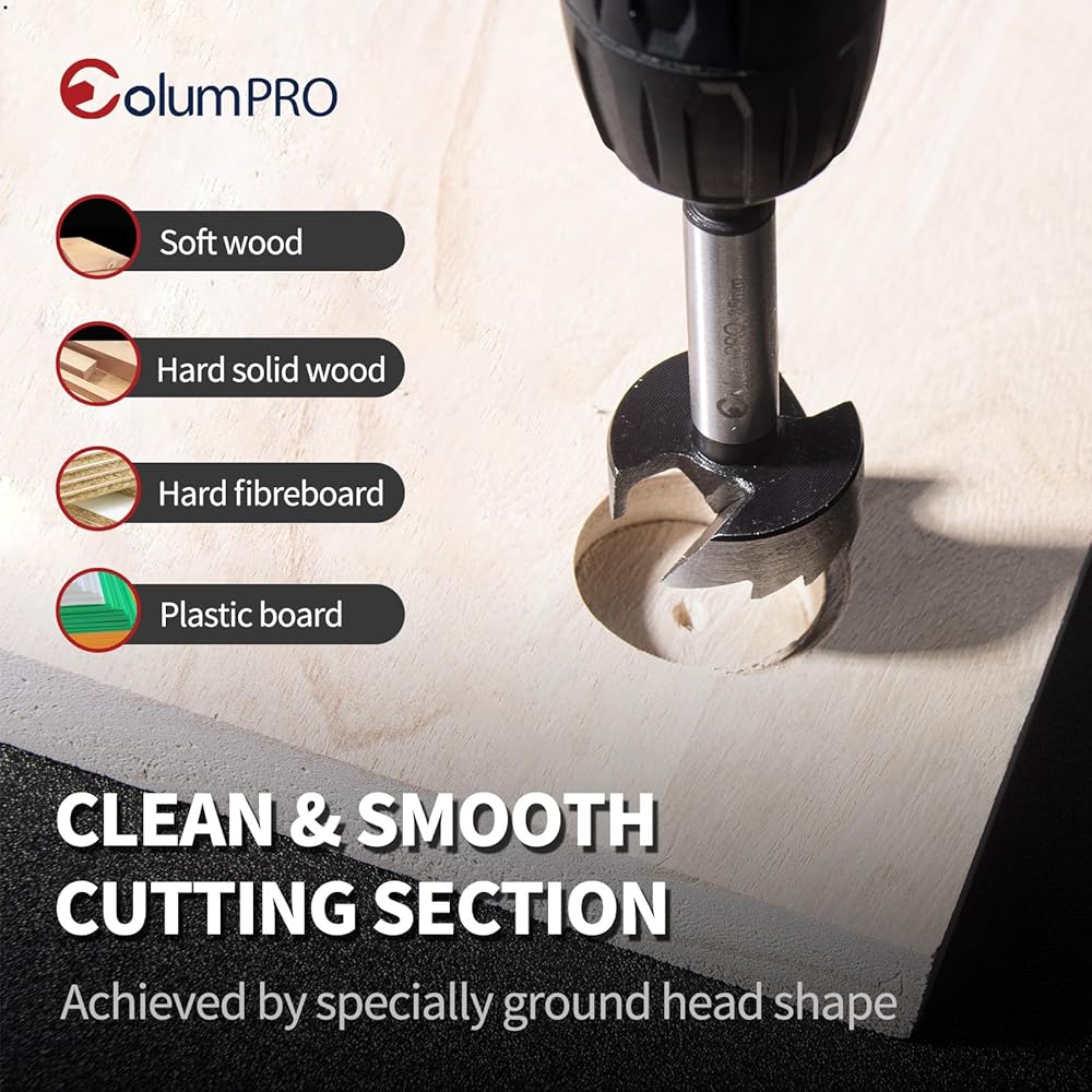 【إزالة الرقاقة بدون مجهود】- يسمح التصميم الفريد لقمة الحفر Forstner مقاس 35 مم (1-3/8 بوصة) من ColumPRO بإزالة الرقاقة بسهولة، مما يضمن عملية حفر سلسة ونظيفة. تسمح القطعة المصممة خصيصًا بالحفر العميق حسب الحاجة.