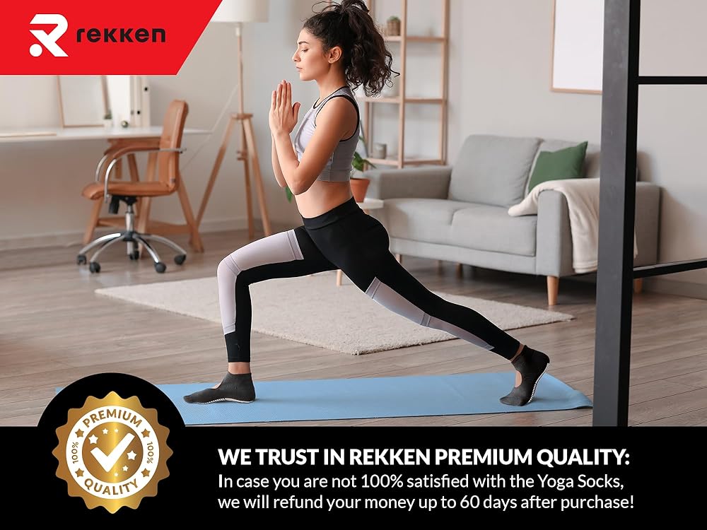قبضة فائقة، آمنة على أي سطح - سواء كنت من محبي اليوغا المتفانين، أو من عشاق البيلاتس، أو من فئة بار، فسوف تقدر الدعم الإضافي والثبات الذي توفره جوارب اليوغا هذه. توفر جوارب البيلاتس من REKKEN قبضة فائقة على أي سطح، مما يساعدك على التعامل مع الأوضاع والحركات الأكثر تحديًا.
