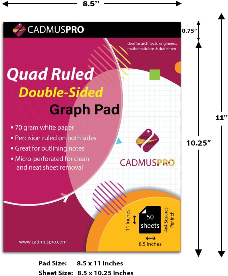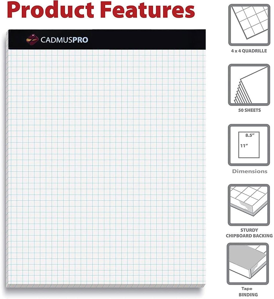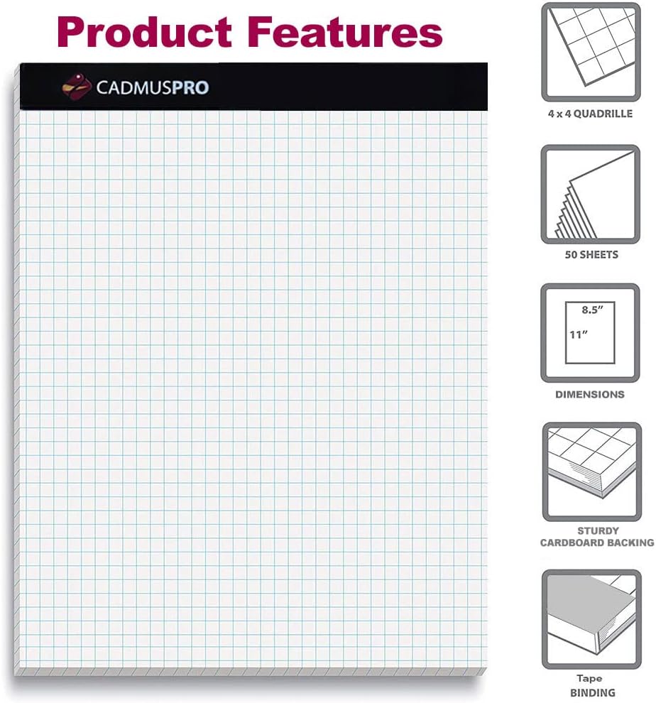 خطاب CADMUSPRO 8.5 "X11" مجلة كتابة ورق الرسم البياني ، 1/4 "الشبكة الرباعية المحكم ، 50 ورقة/لوحة (300/حزمة) ، ربط شريط من الورق المقوى القوي. للمحترفين والطلاب (حزمة 6)