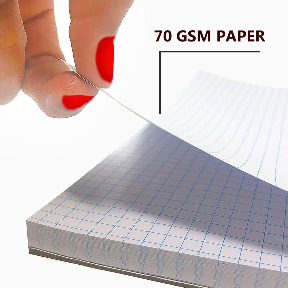 • عدد الأوراق والربط ودعم الظهر: 50 ورقة رسم بياني مثقوبة بدقة لكل وسادة - ورق مقوى علوي وشريط لاصق - دعامة متينة من الورق المقوى بوزن 1200 جرام في المتر المربع لتوفير أقصى قدر من الحماية والمتانة