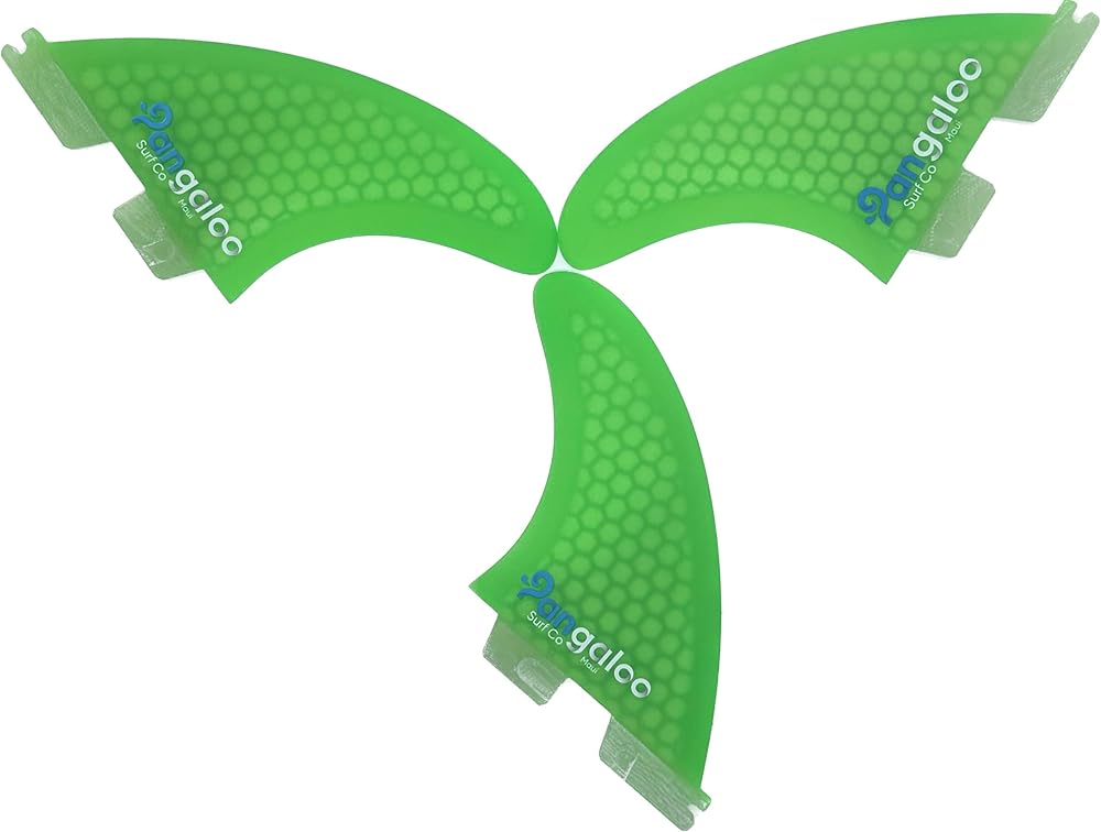 زعانف Pangaloo Surf Co Thruster Surf - زعانف ثلاثية - حجم صغير - صندوق زعانف FCSII (قرص العسل الأخضر)