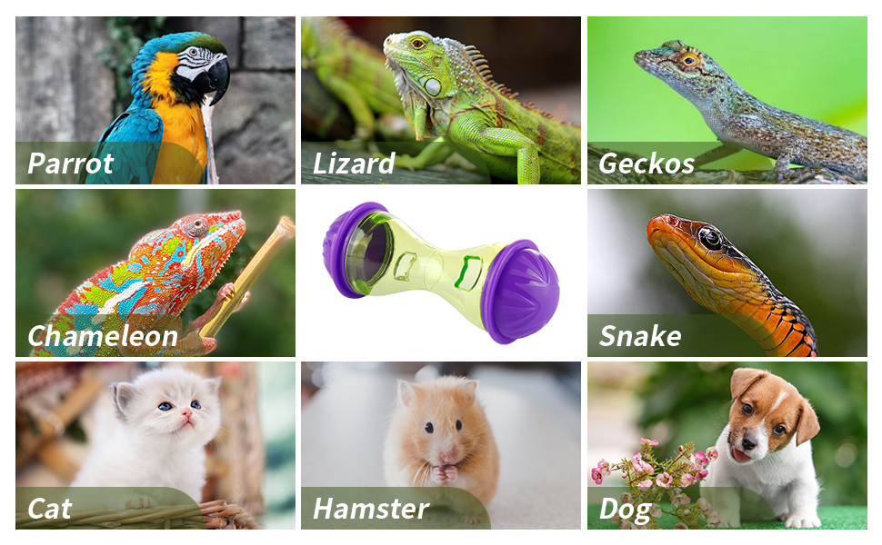 ألعاب تفاعلية للزواحف: ضع الديدان أو الأعلاف في ملحقات الزواحف، ويمكن لحيواناتك الأليفة استخدام رؤوسها وأفواهها لدفع الألعاب والحصول على الطعام، إنها طريقة لطيفة لزيادة طاقة ومتعة حيواناتك الأليفة ولعب الألعاب وإثراء الحياة.