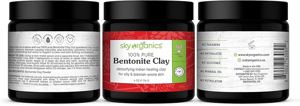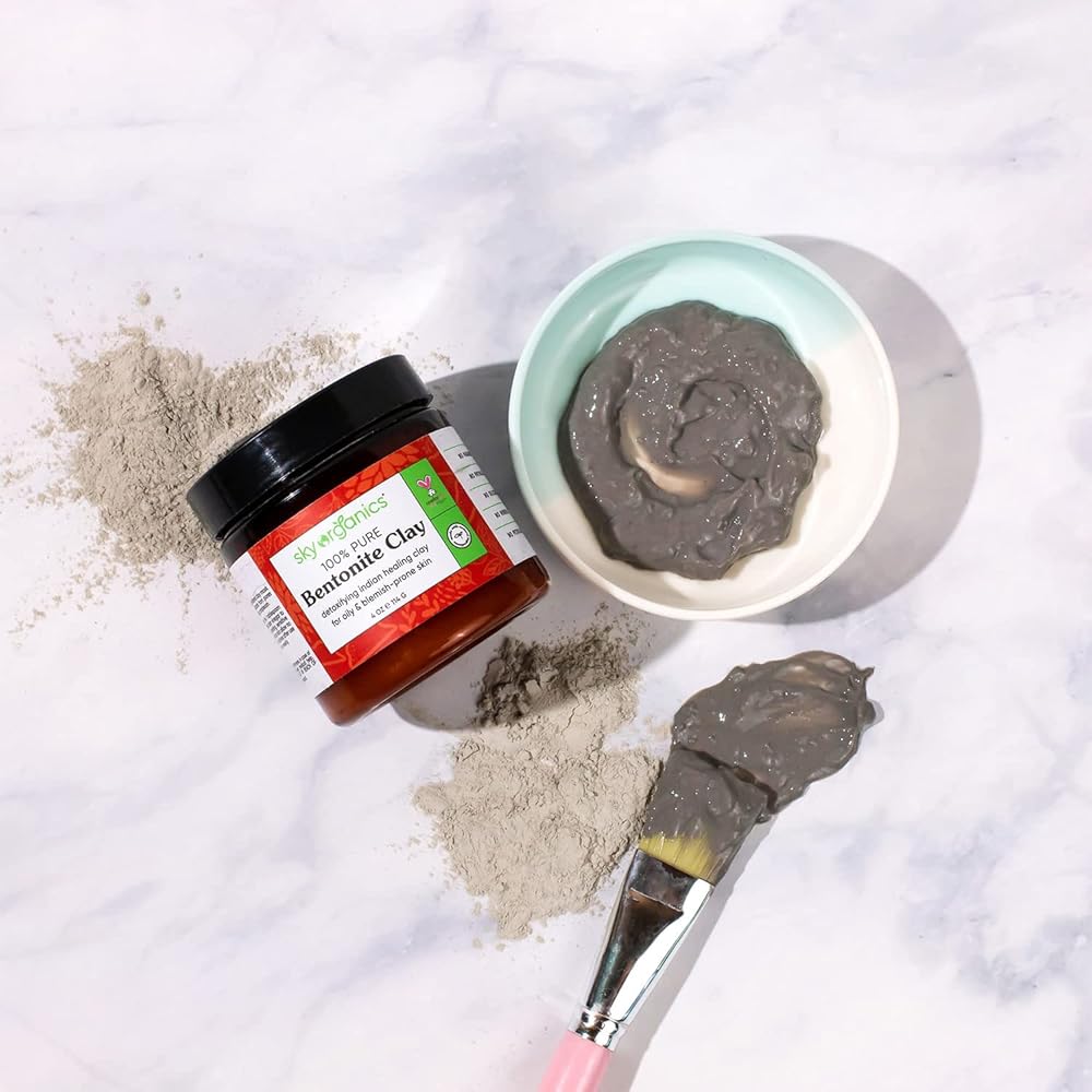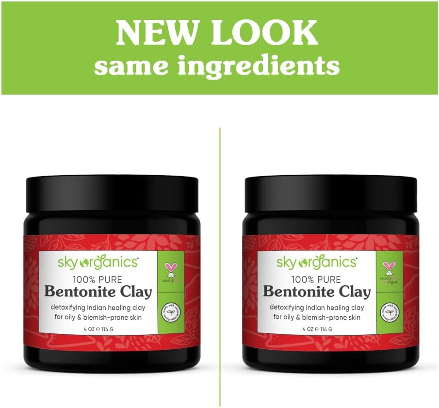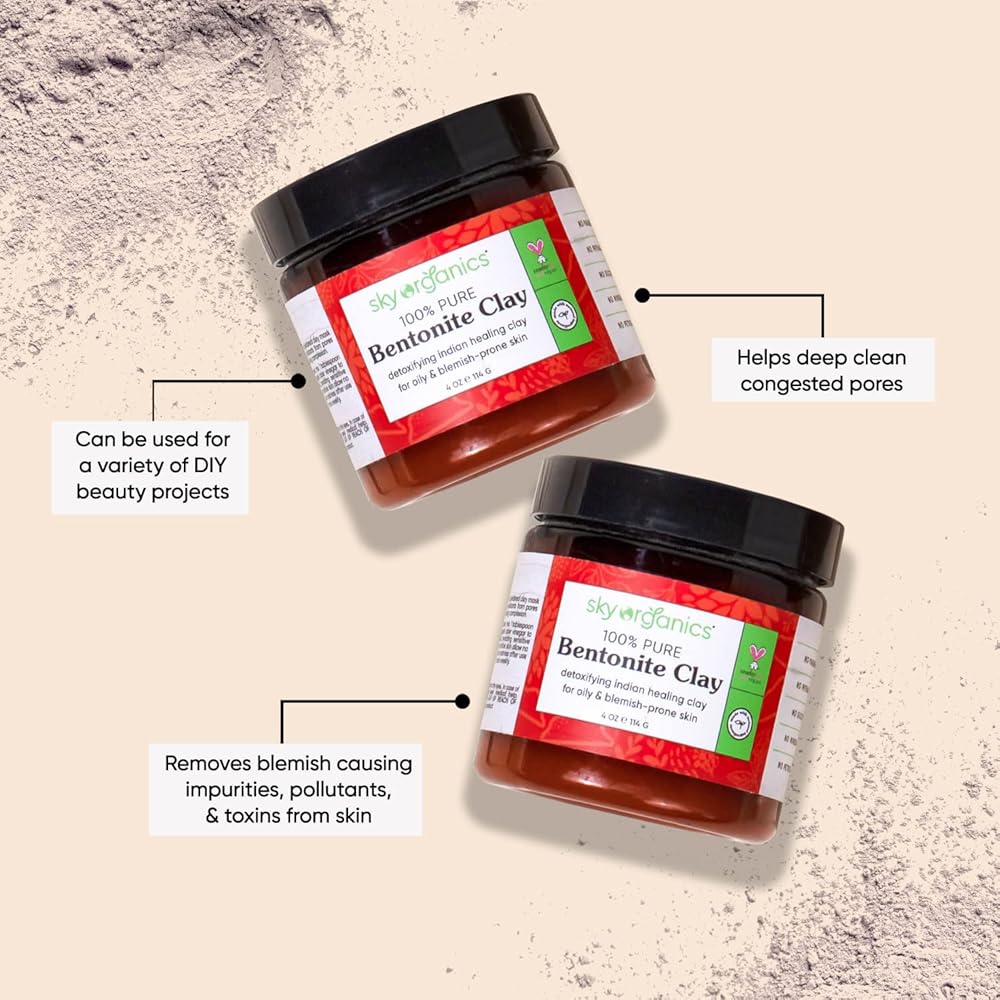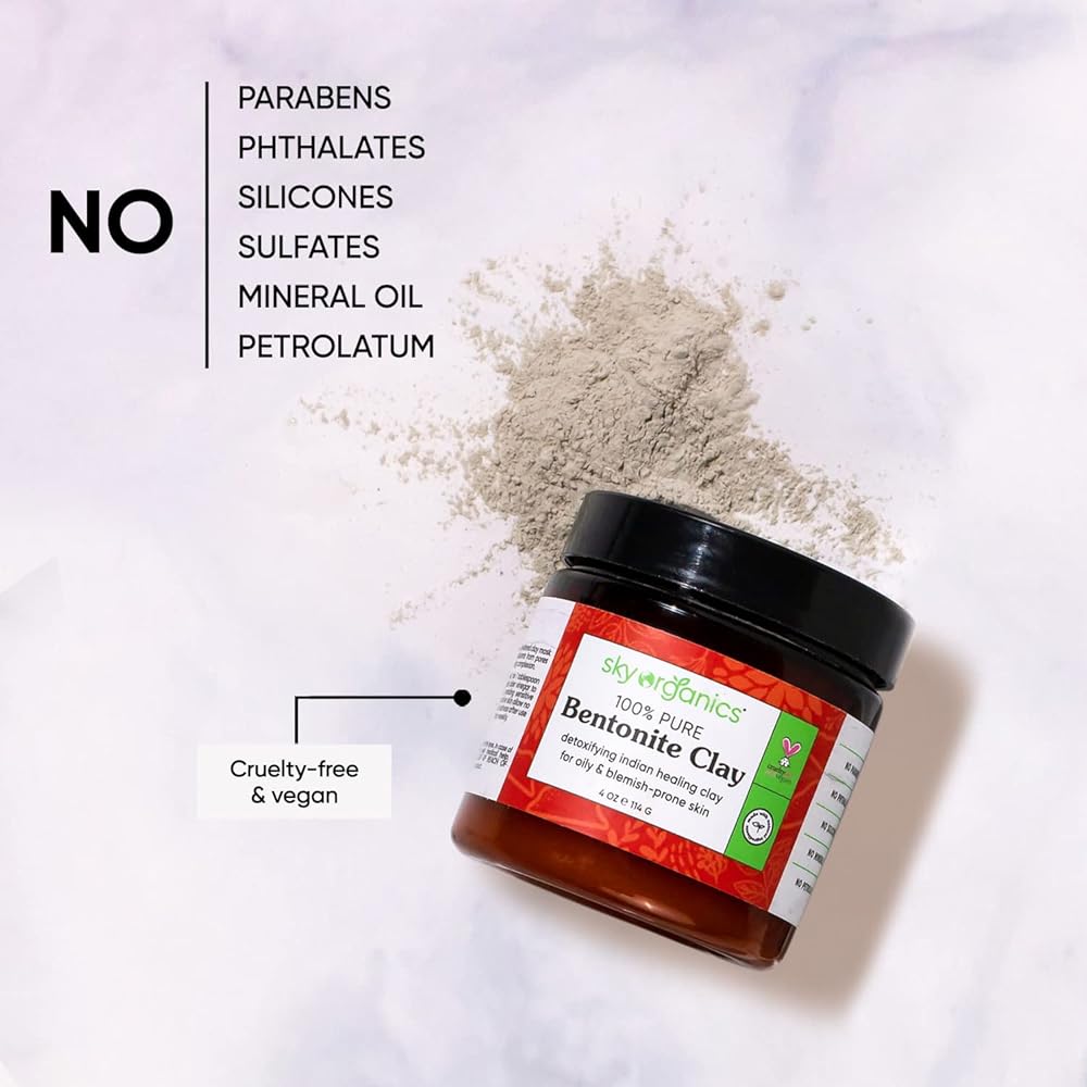 طين الشفاء الهندي من Sky Organics مع طين البنتونيت المزيل للسموم للوجه، يساعد على إزالة الشوائب، مناسب للبشرة الدهنية أو المعرضة للشوائب، عناية بالبشرة نقية 100%، نباتية ولم يتم الإساءة إلى الحيوانات لتصنيعها، 118 مل.