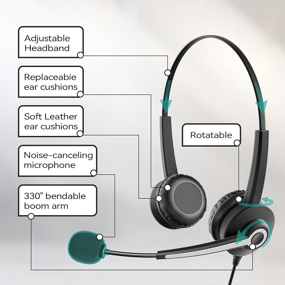 سهلة الاستخدام: تحكم احترافي في مستوى الصوت وزر إجابة تشغيل/إيقاف مدمج. التوصيل والتشغيل، فقط قم بتوصيل سماعة الرأس بمقبس 3.5 ملم على هاتفك الذكي أو الكمبيوتر أو الجهاز اللوحي وستكون جاهزًا للتحدث. اختيار مثالي لمركز الاتصال، والدورات التدريبية عبر الإنترنت، ودردشة Skype، والمكالمات الجماعية، والفصول المدرسية K12، والتعليم والمزيد. ضمان استرداد الأموال لمدة 30 يومًا وضمان لمدة عام.