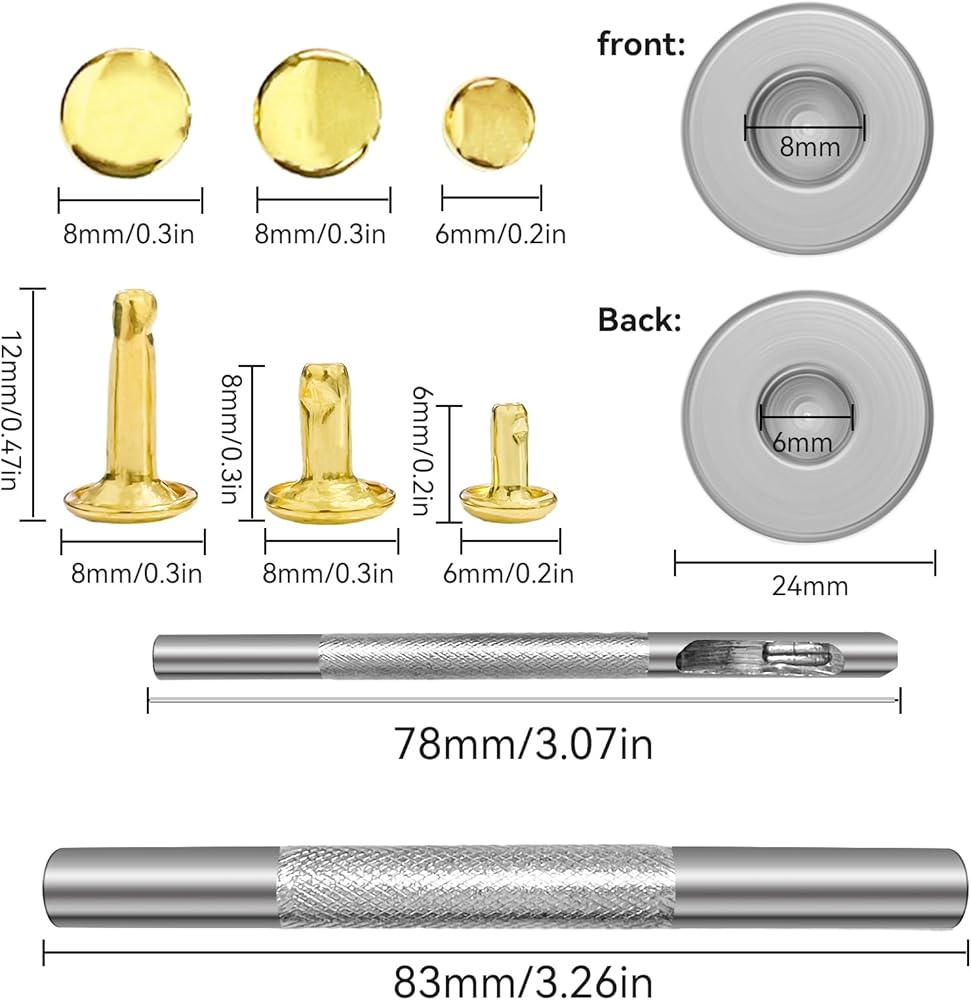 INFORMATION DETAILS: Type: Double Cap Rapid Rivets Width: 8mm, 6mm length: 12mm,8mm, 6mm Color: gold, silver, bronze, gunmetal You can choose the most suitable size and color for assembly!