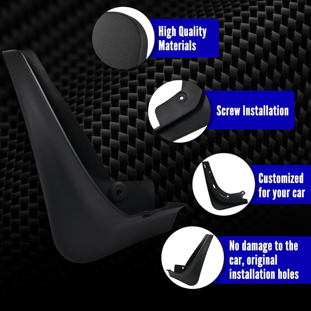 【احم سيارتك】تتضمن مجموعة رفرف الطين أغطية للجزء الأمامي والخلفي من سيارتك. توفر اللوحات الطينية هذه طبقة إضافية من الحماية بين إطاراتك وطلاءك. يمكن لواقيات الطين حماية سيارتك من الرمال والصخور التي يلقيها مداس الإطار من إتلاف الطلاء. الطين والثلج والجليد وحطام الطريق الآخر يرتد ببساطة من هذه اللوحات قبل أن يصل إلى جانب شاحنتك. يقلل من البقع الناجمة عن المطر والثلج والطين والرمل وما إلى ذلك. حافظ على نظافة سيارتك ولامعتها. حماية سيارتك.
