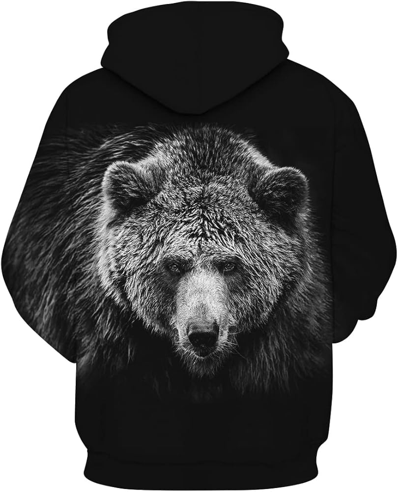 Unisex 3D The Bear Print Hoodie Pullover Sweatshirt Hooded with Pocket