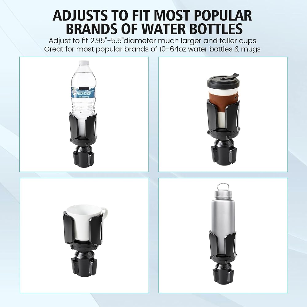 يناسب الزجاجات والأكواب بعرض 2.95 سم - 5.51 سم. حامل الأكواب الكبير للسيارات مثالي لمعظم العلامات التجارية المشهورة لزجاجات المياه بسعة 10-64 أونصة والأكواب ذات المقابض.