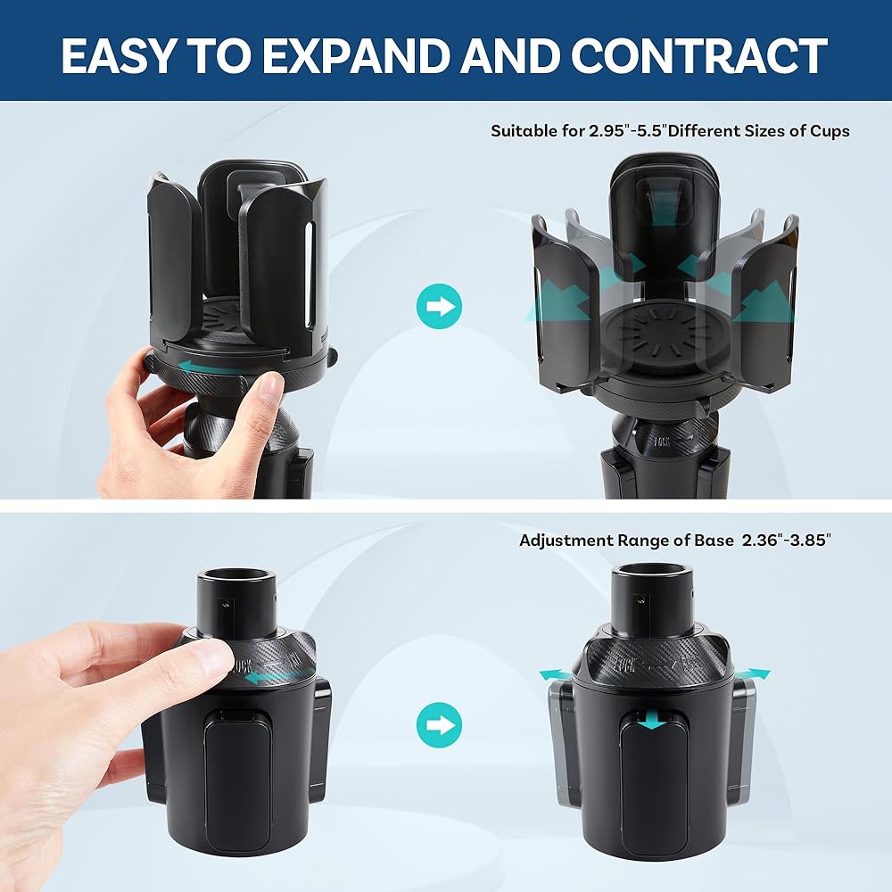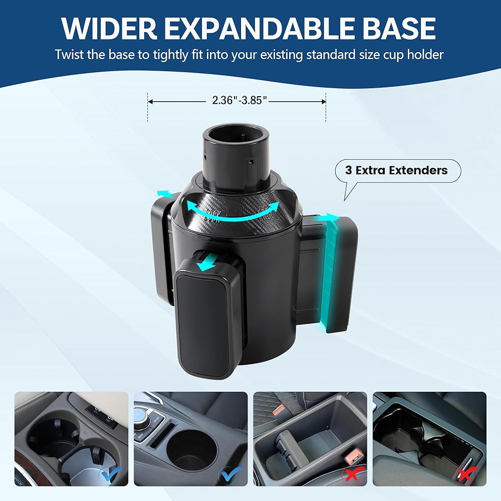 توسيع القاعدة. يمكن تعديل حامل أكواب السيارة الخاص بنا من 2.36 بوصة إلى الحد الأقصى 3.85 بوصة ليناسب معظم المركبات. كما أنه يعمل بشكل رائع لعربات الجولف، وUTV، وATV، والشاحنات، وRVs، والدراجات النارية، والقوارب وغيرها من الأثاث مع حاملات الأكواب القياسية وما إلى ذلك.
