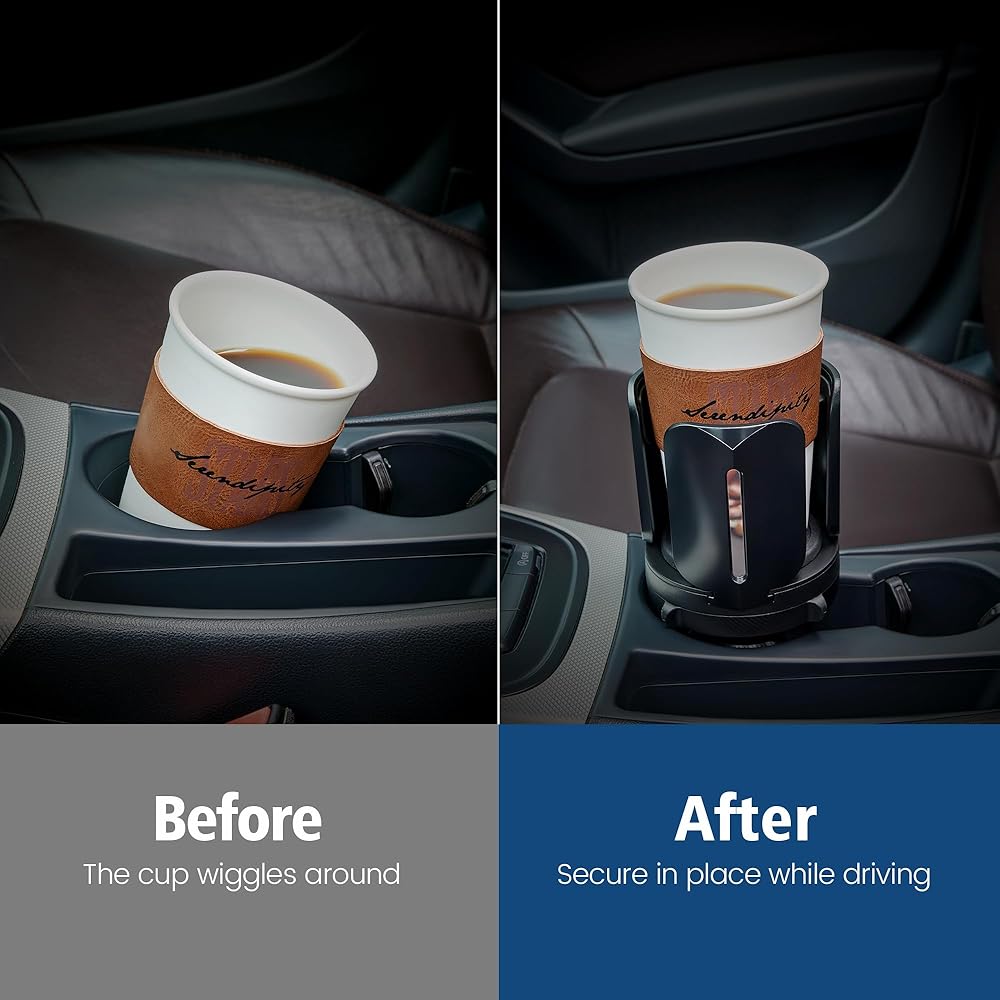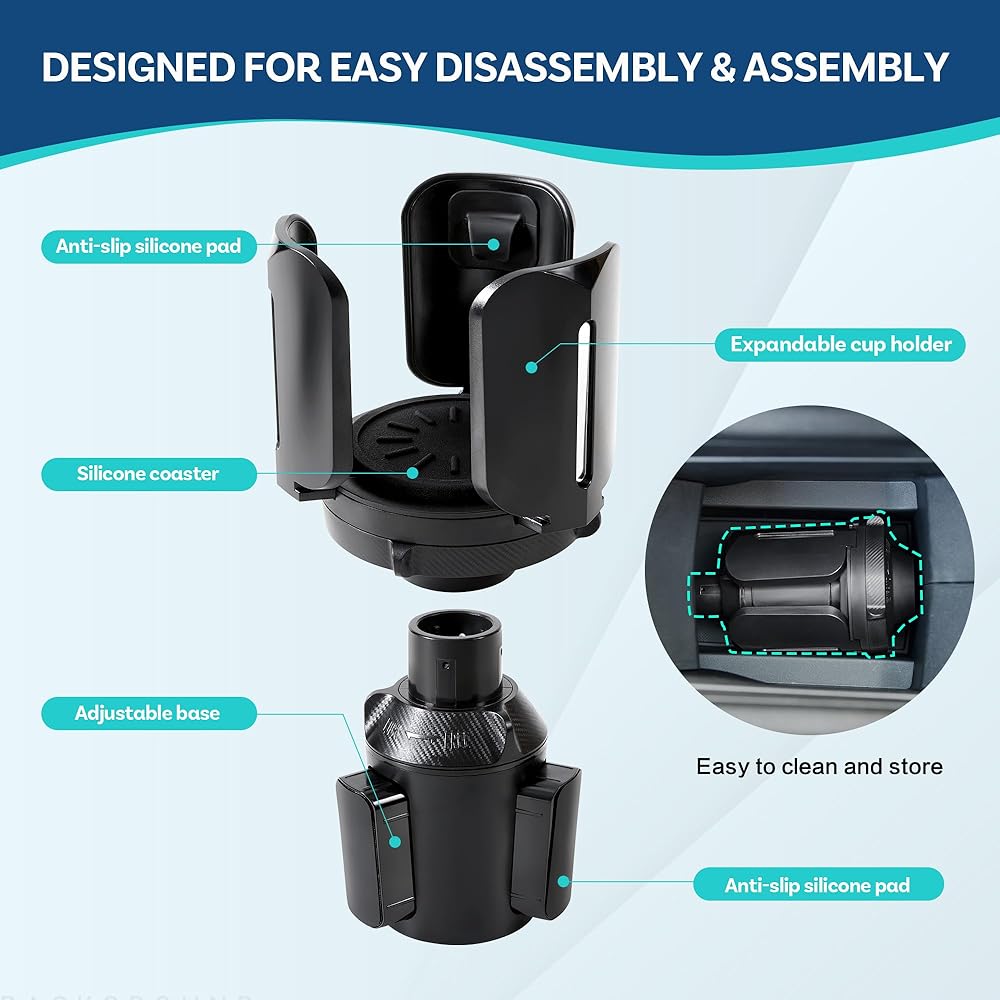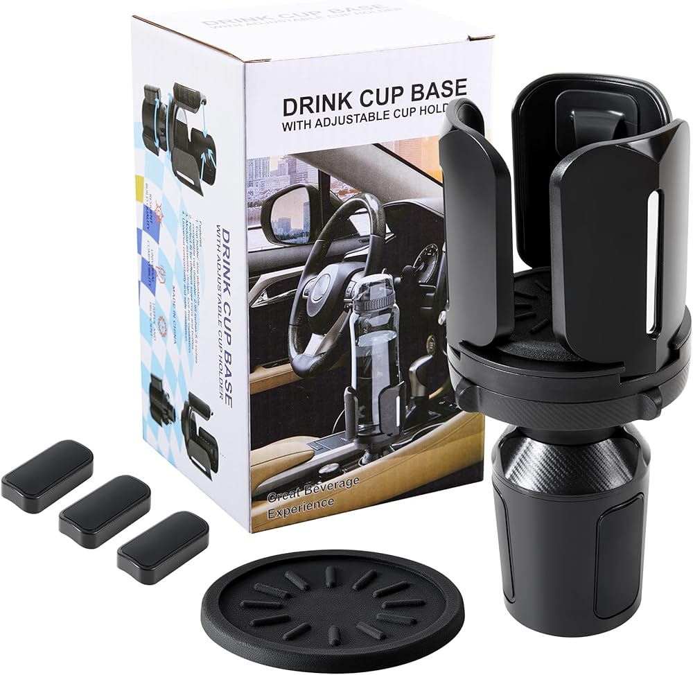يبقى في أمان. لمزيد من الإمساك، تم تصميم محول الأكواب على شكل مخلب، ومن السهل توسيعه وتقليصه ليناسب أحجام مختلفة من الزجاجات وحجم حامل الأكواب الموجود في السيارة.