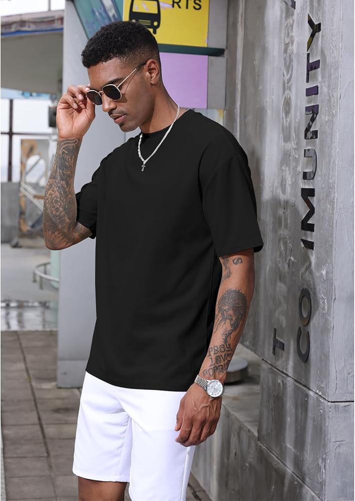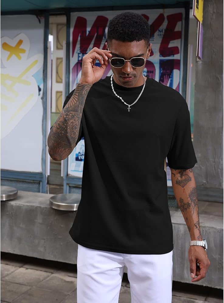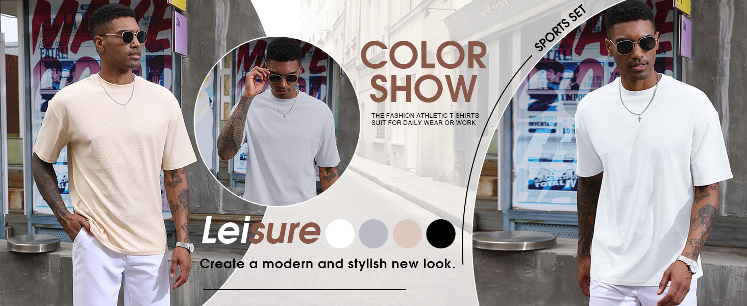 - [التصميم]: تي شيرت رياضي رجالي بكتف منسدل، تصميم كبير الحجم، لون ثابت، تي شيرت فضفاض ويزيد من إحساس الموضة مع الحفاظ على الراحة.