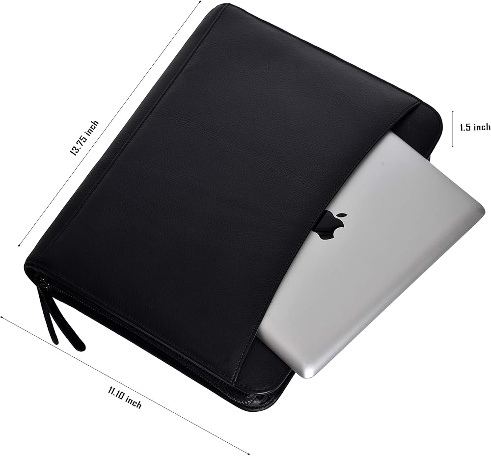 • منظم تنفيذي أنيق مع حافظة كمبيوتر محمول: يحتوي المجلد الاحترافي على حافظة خارجية يمكن استخدامها كحافظة لجهاز Macbook أو لحمل أجهزة الكمبيوتر المحمولة حتى 13 بوصة. يوجد جيب داخلي إضافي لحمل الأجهزة اللوحية وأجهزة iPad. بفضل التصميم النحيف واللمسة النهائية الجلدية الناعمة، تتناسب مجموعتنا متعددة الاستخدامات مع أي ملابس وتمنحك جاذبية مهنية ومؤسسية ممتعة. لا بد أن تبدو ذكيًا وواثقًا من خلال محفظة الأعمال هذه بين يديك.