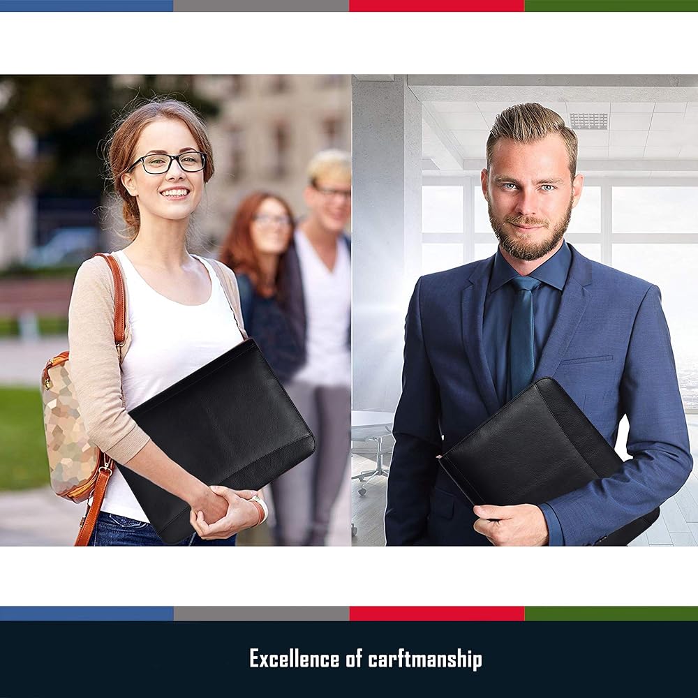 • جلد أصلي عالي الجودة للاستخدام الاحترافي: محفظة الأعمال السوداء من Estalon مصنوعة من جلد الجاموس الحقيقي بنسبة 100% وهو ناعم ويدوم طويلاً. بفضل ملمسها الناعم وتصميمها الأنيق، تضيف الحافظة جاذبية احترافية أنيقة للاستخدام اليومي لكل من الرجال والنساء. إنه ذو فائدة كبيرة كمجلد عمل للعروض التقديمية واجتماعات العملاء، ومحفظة المقابلات، ومجلد الطلاب، وحتى منظم شخصي لتخزين المستندات المهمة مثل جوازات السفر أثناء السفر.