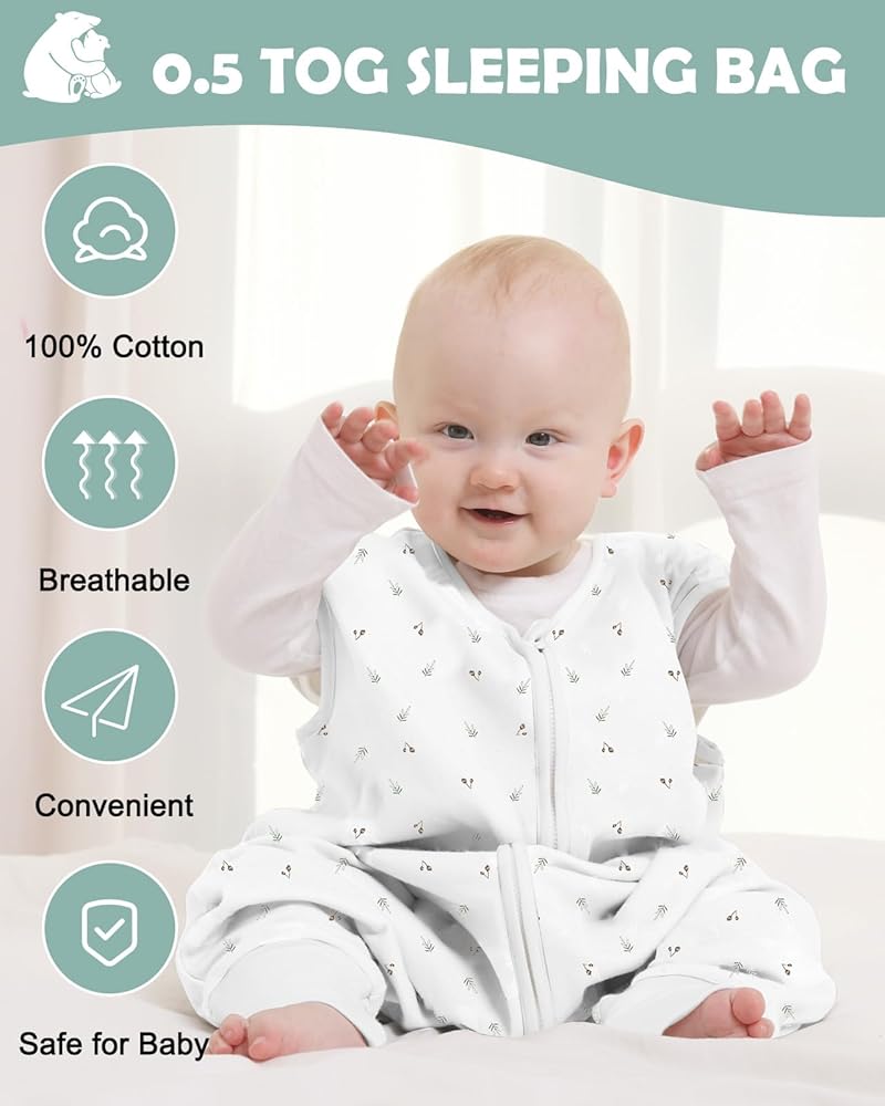 【كيس نوم للأطفال الصغار بوزن 0.5 TOG】مصمم بتصنيف 0.5 TOG، يضمن كيس نوم الأطفال الصغار لدينا بقاء طفلك الصغير دافئًا بشكل مريح دون ارتفاع درجة الحرارة خلال ليالي الصيف، وهو مثالي لدرجات حرارة الغرفة بين 75.2 درجة فهرنهايت - 80.6 درجة فهرنهايت (24 درجة مئوية -27 درجة مئوية).