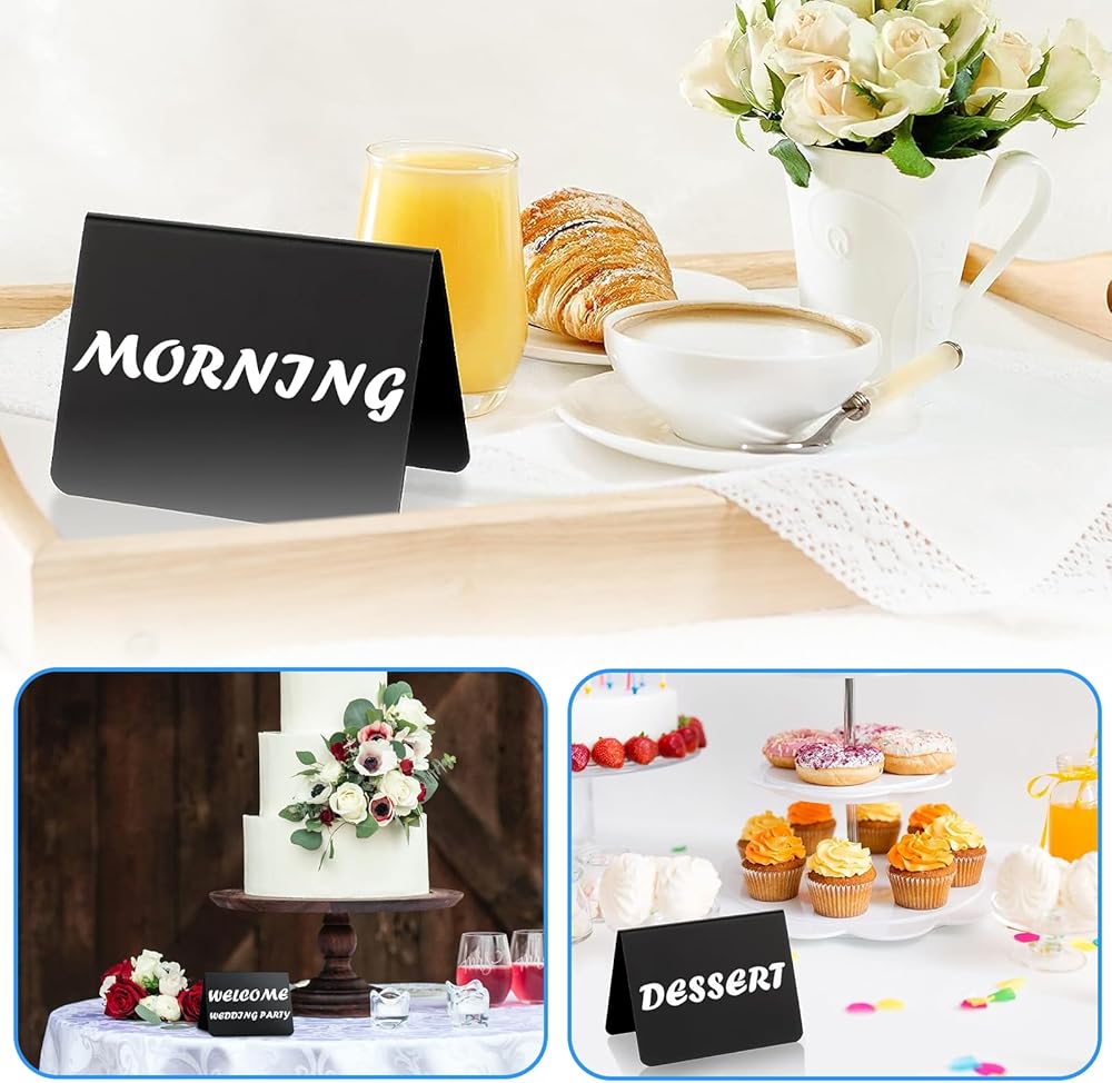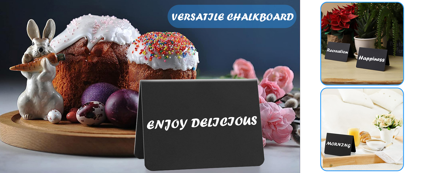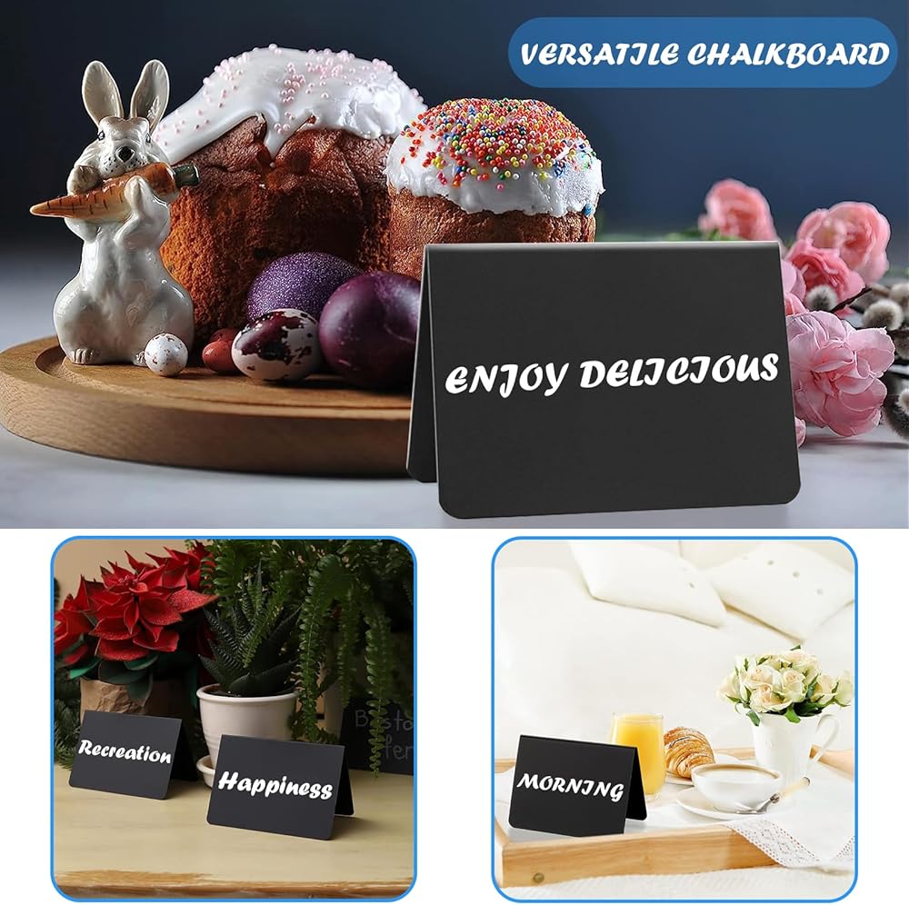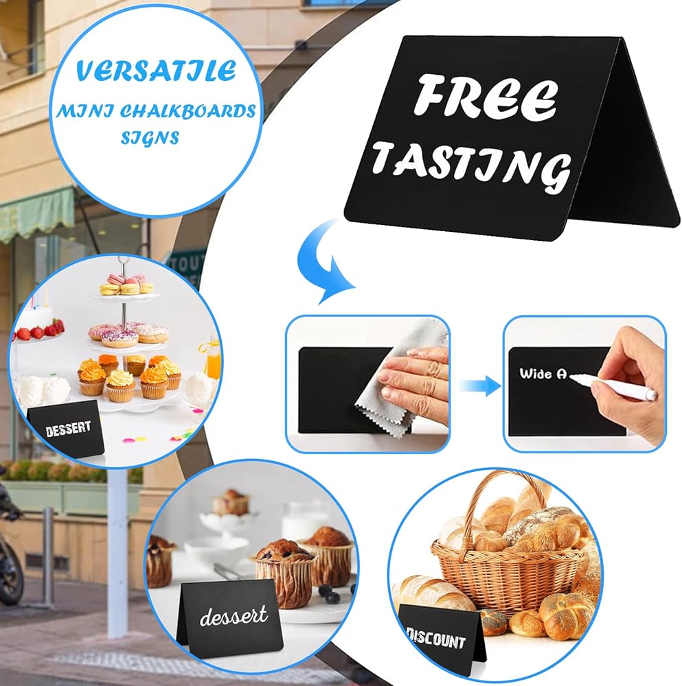 إبداع متعدد الاستخدامات - أطلق العنان لإبداعك مع لافتات السبورة الصغيرة للحفلات وحفلات الزفاف ومتاجر الحلويات؛ استخدمها كعلامات زفاف، وأرقام طاولات، وبطاقات أسماء، وبطاقات مكان، ولافتات تزيين نباتية، وملصقات طعام وما إلى ذلك.