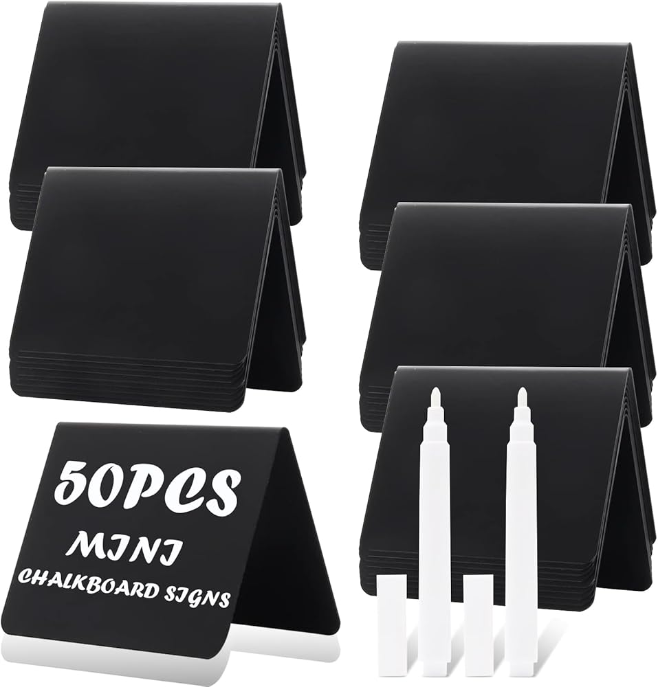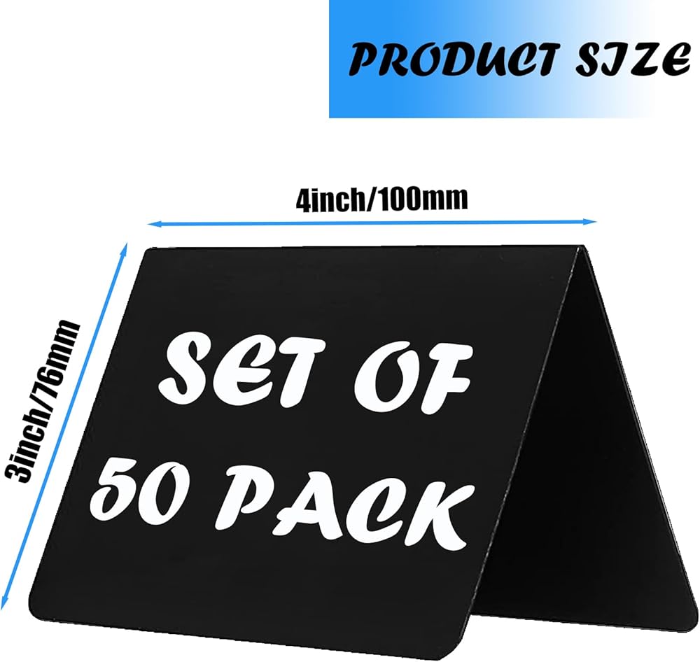 جودة وفيرة - تتضمن العبوة 50 قطعة من لافتات السبورة الصغيرة مقاس 4 × 3 بوصات وقطعتين من أقلام التحديد البيضاء، سيكون لديك كل ما تحتاجه للاستخدام اليومي أو المناسبات الخاصة.