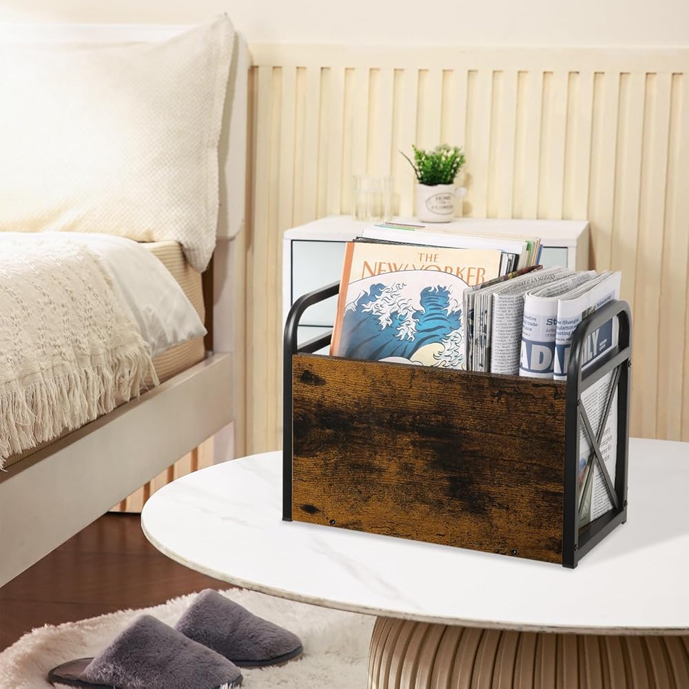 تنظيم سهل: لا يوفر حامل المجلات هذا مساحة تخزين فحسب، بل يقدم أيضًا حلاً أنيقًا للحفاظ على مواد القراءة الخاصة بك مرتبة ويمكن الوصول إليها. تصميمه الواسع يستوعب أحجام مختلفة من المجلات أو الكتب أو سجل الفينيل أو الصحف، مما يحافظ على مساحة معيشتك منظمة ومنظمة. خالية من الفوضى، مما يعزز جوًا مريحًا.