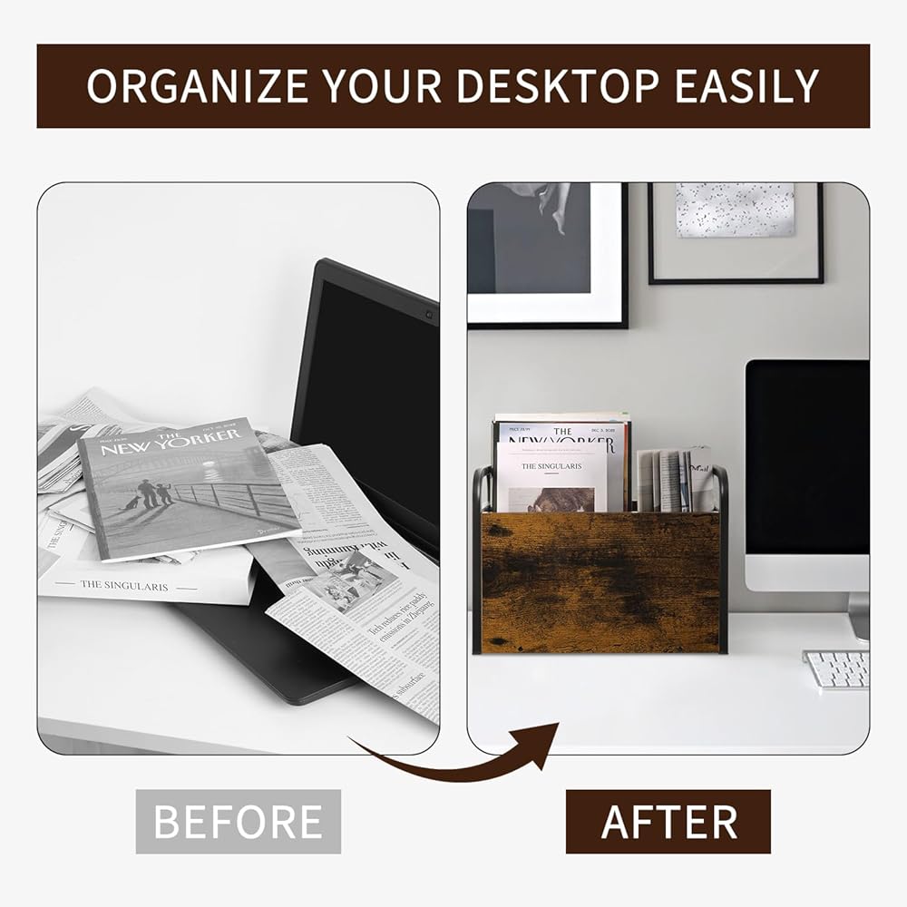 أناقة عتيقة، متانة عصرية: احتضن الجاذبية الخالدة للجماليات العتيقة إلى جانب قوة المواد الحديثة. ينضح اللوح الخشبي الريفي المختار بعناية بالشخصية، بينما يضمن الإطار المعدني الفاخر مع عملية طلاء الخبز أن حامل المجلة هذا يصمد أمام اختبار الزمن، ويصبح قطعة ساحرة ودائمة في ديكور منزلك.