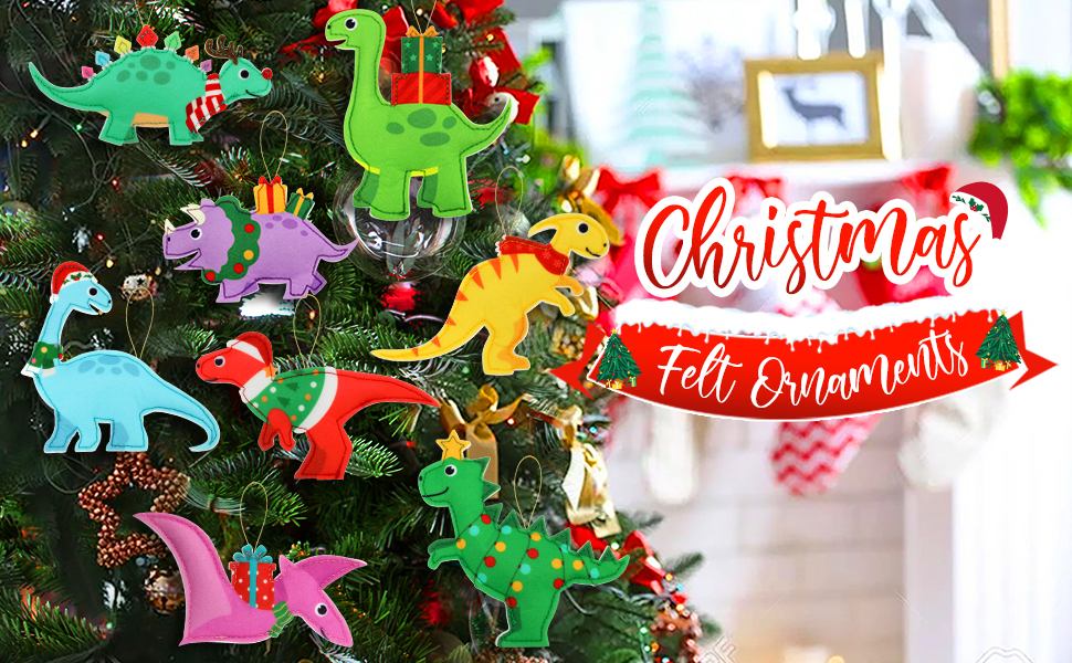 【مادة ناعمة وقوية】هذه الديكورات المعلقة للديناصورات في عيد الميلاد مصنوعة من مادة اللباد، ذات ملمس ناعم وقوية بما فيه الكفاية. بالإضافة إلى ذلك، ليس من السهل أن تتسخ أو تنكسر، ويمكنك غسلها بعد فترة طويلة من الاستخدام.
