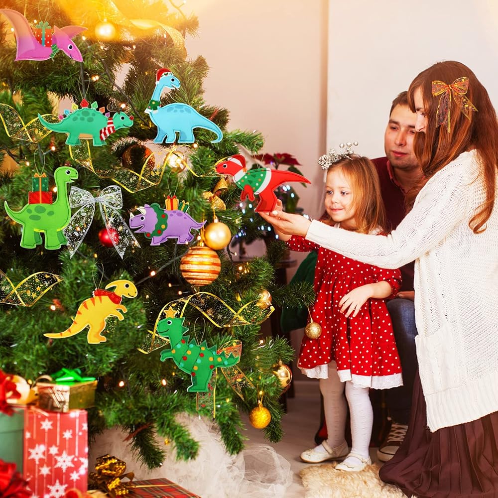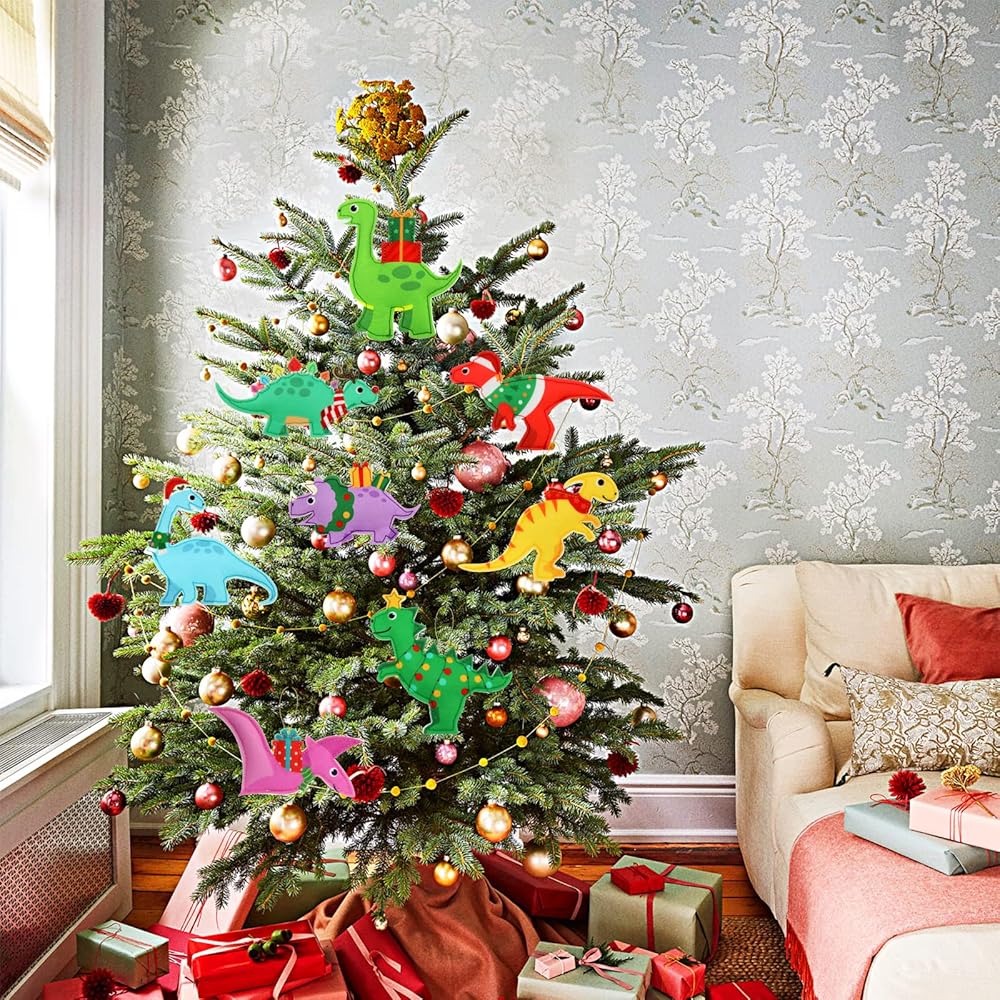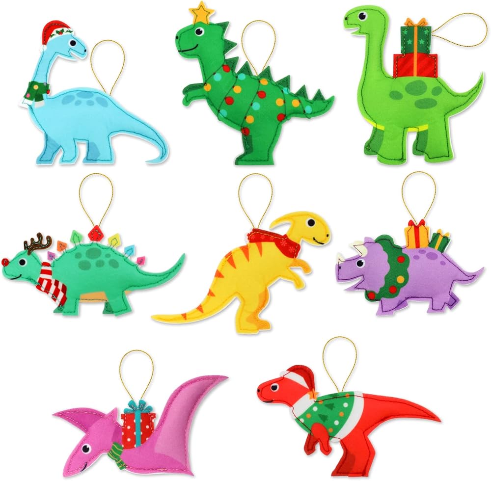 شعرت ديناصور عيد الميلاد الحلي للأطفال (8 تصاميم)، دينو شجرة عيد الميلاد شنقا الحلي لعطلة الشتاء عيد الميلاد شنقا زينة الحزب تفضل، لطيف تي ريكس ترايسيراتوبس ديبلودوكس (مجموعة من 8)