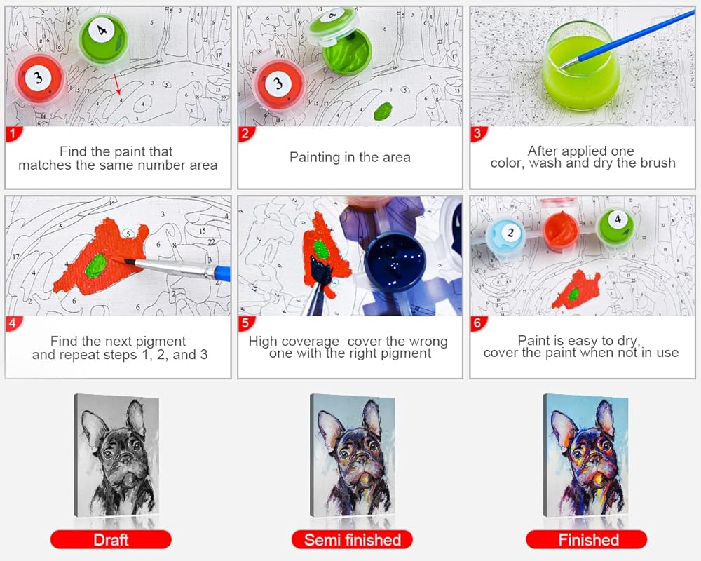 سهلة الاستخدام: مجموعة الطلاء بالأرقام مناسبة للبالغين والأطفال والمبتدئين من جميع الأعمار. اتبع التعليمات الخاصة بكتابة اللوحة ويمكنك الحصول على الكثير من المرح منها. يمكنك إكمال الطلاء الرقمي للبالغين واستخدامه لتزيين غرفتك.