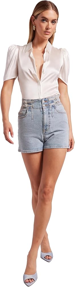 A closet essential gets a feminine touch in the Melinda. The classic button-up is given a fresh look with a soft silk blend and short puff sleeves. Style with a flowy skirt and wedges for your next backyard party, or layer with a blazer and trousers for a professional look.