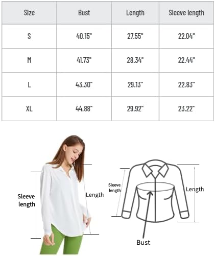 • المواد: قمصان نسائية طويلة الأكمام بأزرار سفلية، مصنوعة من نسيج خفيف الوزن وناعم، منعش ومسامي، صديق للجلد، مريح في الارتداء ليس من السهل التجاعيد والتشوه، سهل العناية به. ليس ضيقًا، وشفافًا قليلاً، مع حاشية مستديرة لتغطية الوركين. هذه البلوزة النسائية ضرورية في خزانة ملابسك.