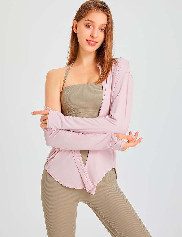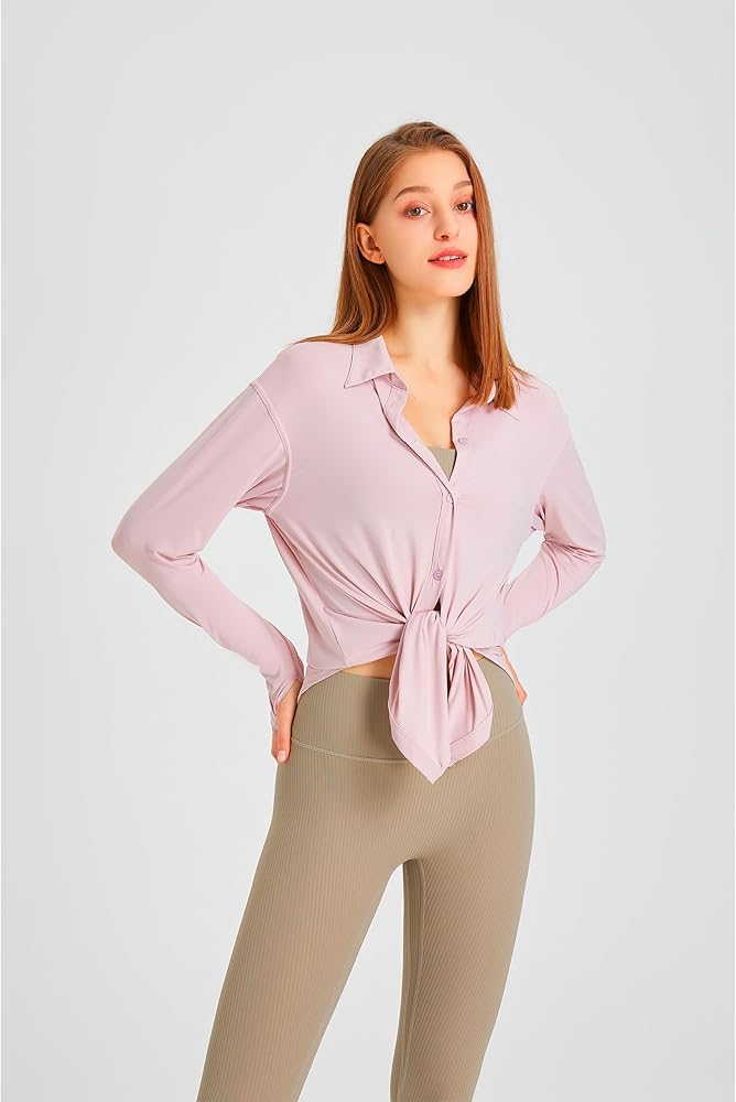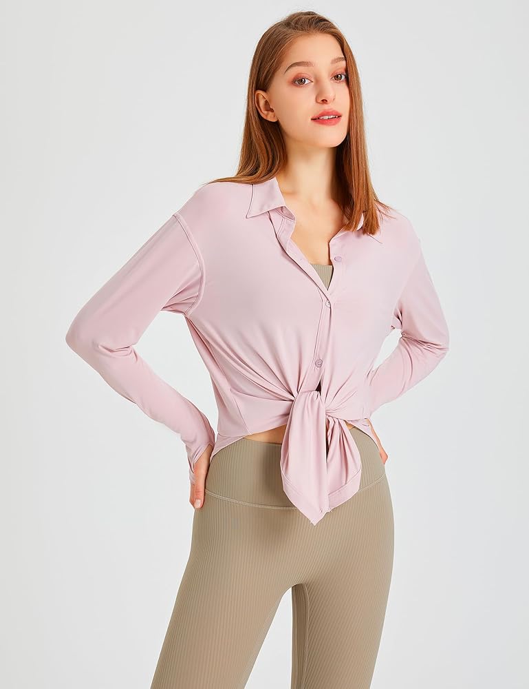 • التصميم: بلوزة للسيدات بأكمام طويلة مصممة لكل من الملابس الكاجوال والرياضية، مناسبة لتمارين اليوغا والتمدد والملابس المنزلية الكاجوال، تصميم بأزرار أمامية، خفيفة الوزن وقابلة للتمدد