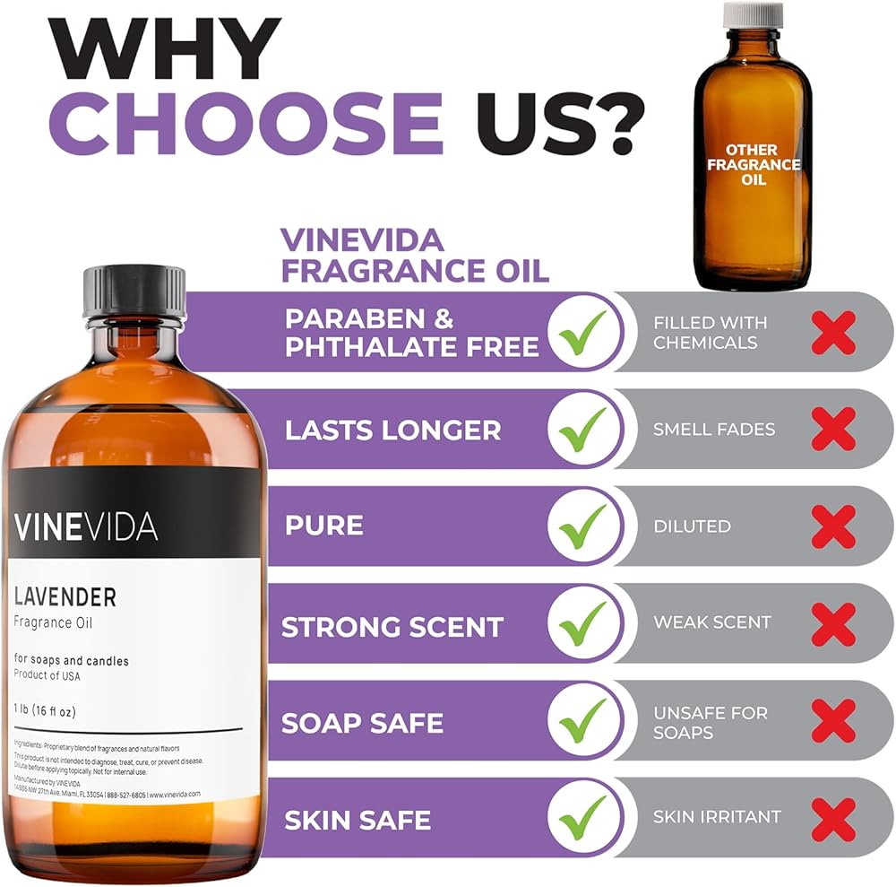 أعلى جودة - الروائح والعطور الخاصة بنا آمنة على البشرة (عند تخفيفها) صُنعت في الولايات المتحدة الأمريكية باستخدام مكونات نقية وطبيعية وخام. جميع منتجات VINEVIDA نباتية، وخالية من الفثالات والبارابين والمواد الكيميائية الأخرى التي قد تكون خطرة.